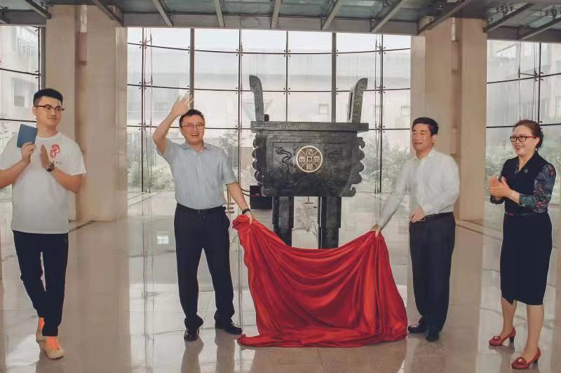 蔡立东院长与周春国书记共同为玉鼎揭幕。这尊鼎象征着成人抖音