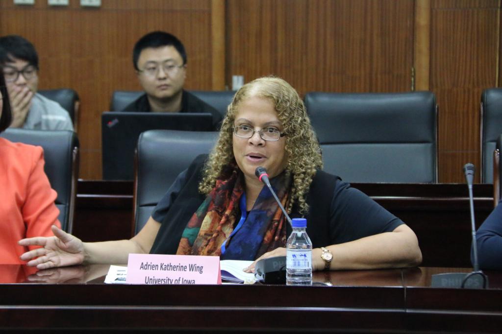美国爱荷华大学国际和比较法副院长阿尔德里安·凯瑟琳·温教授做了《美国法律教育面临的挑战》主题发言。指出在美国法学学生数量减少的现状和原因,并提出改革举措建议。同时介绍美国法学教育有更多的学位选择,及案例教学法和苏格拉底教学法为主的教学方式。