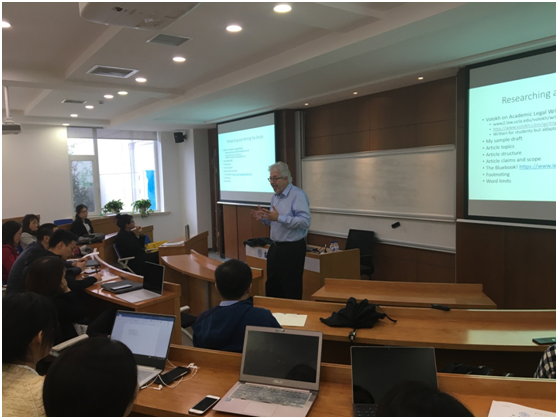 学术沙龙会开始后,约翰教授首先就论文检索分享了他的经验,他向大家介绍了www.ssrn.com等可以检索并下载到高质量英文论文的网站,和大家分享了他在学术写作方面的心得体会,与此同时他还向大家介绍了他推崇备至的学术写作网站——。对于学术写作的是否需要借鉴模板的问题,约翰教授也发表了自己的看法。