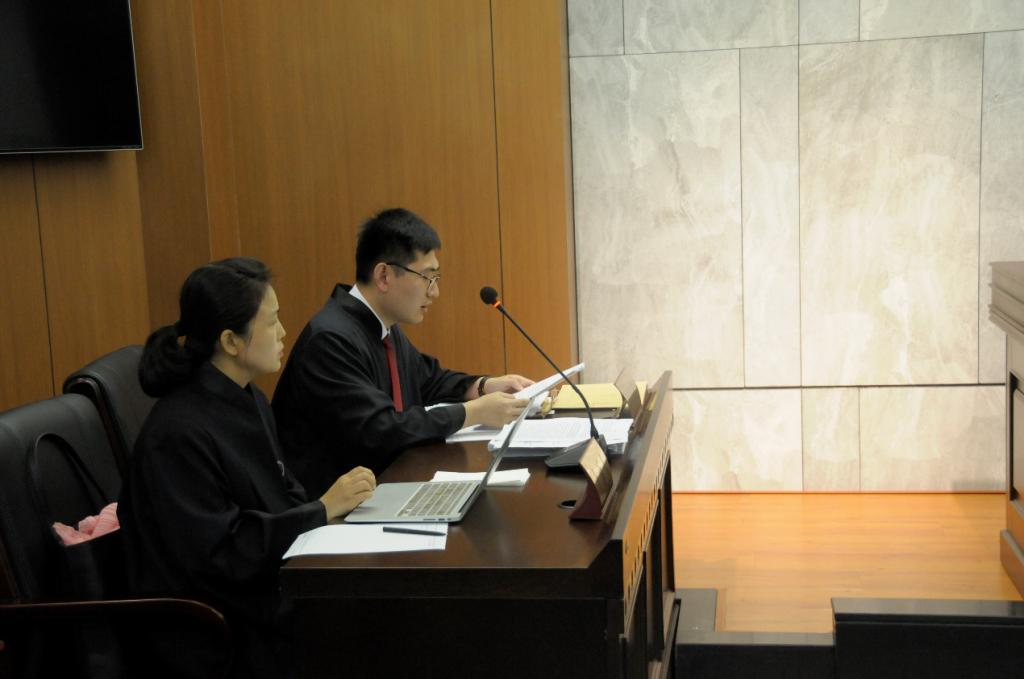 上午8:30,模拟法庭中便已座无虚席,同学们早早来到模拟法庭,坐在旁听席翘首以待,静候这场精彩的庭审。上午九点整,伴随该案开庭时的一声槌响,庭审准时开始。在书记员宣读完法庭纪律后,全体起立,迎接合议庭成员落座。该案由主审法官宋春雨担任审判长,与主审法官丁俊峰、李盛烨组成合议庭进行审理。