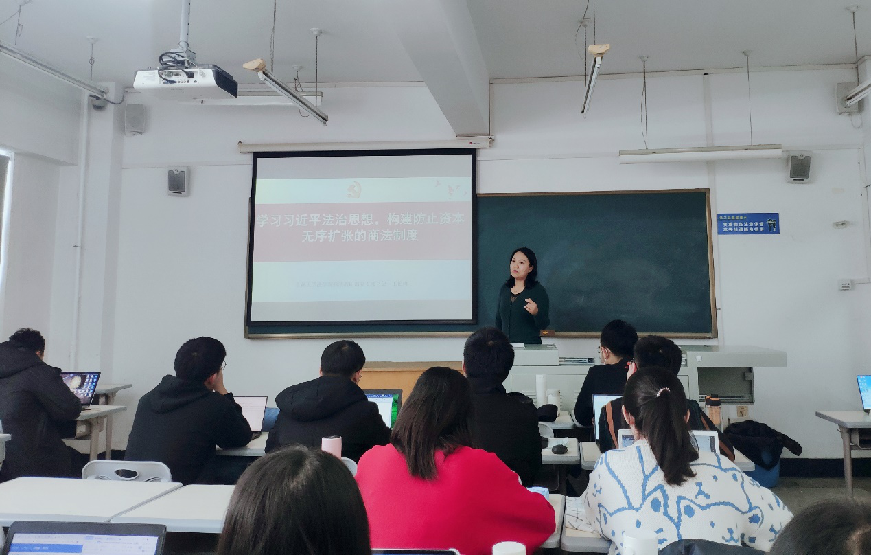 商法教研部党支部书记王艳梅教授应邀出席活动并做专题授课,本次活动由2020级法学硕士三班班长崔炜主持。