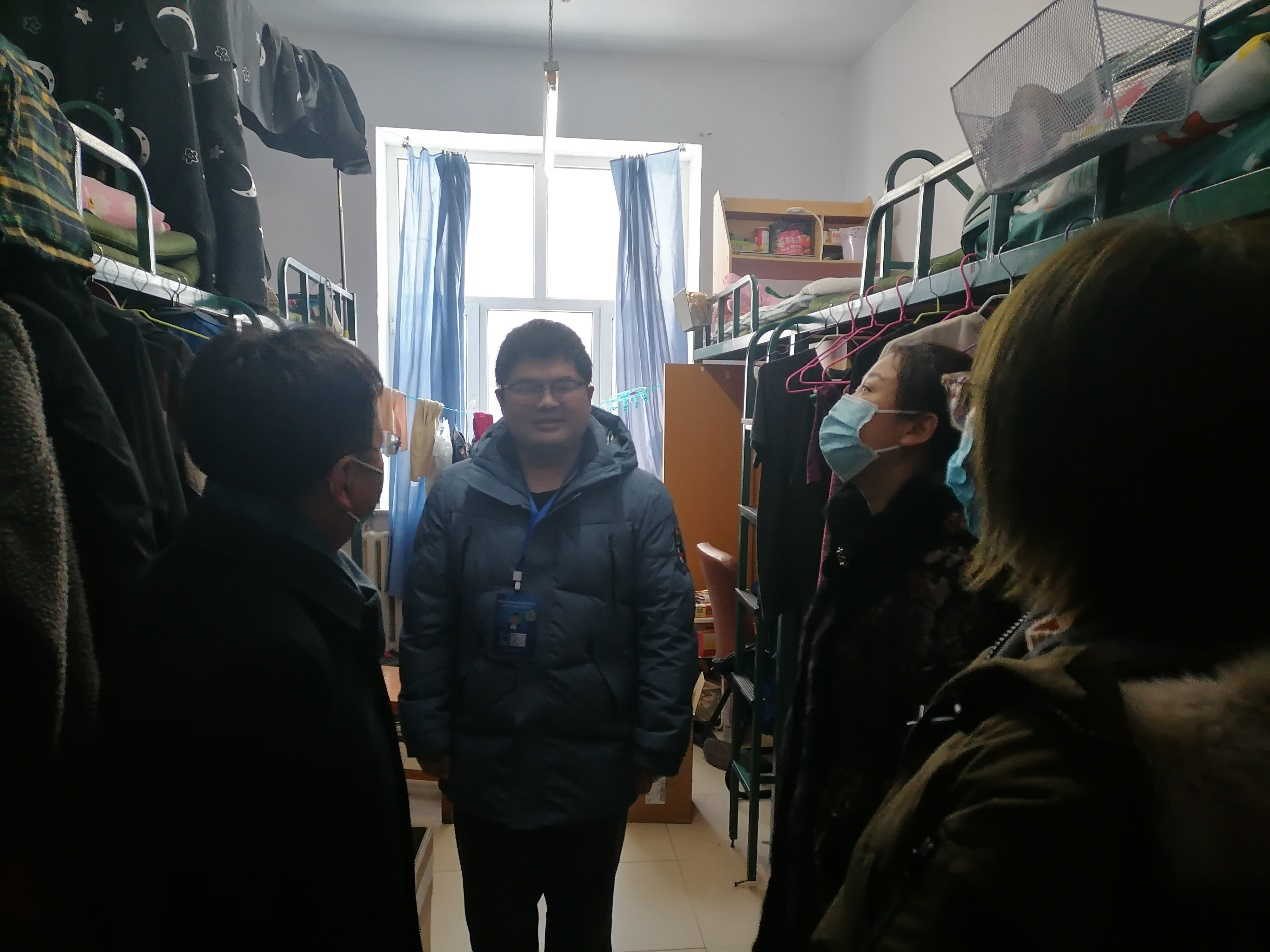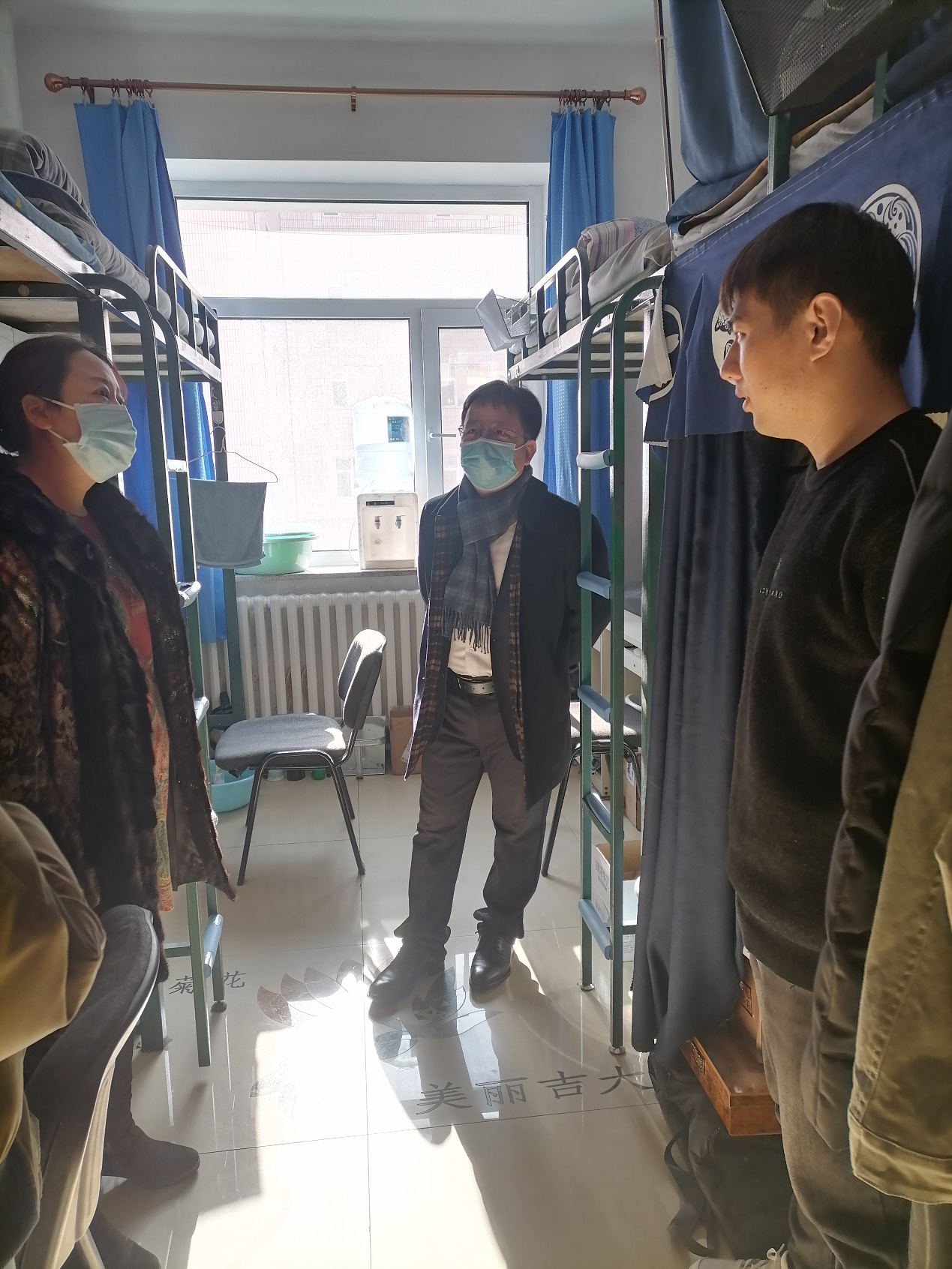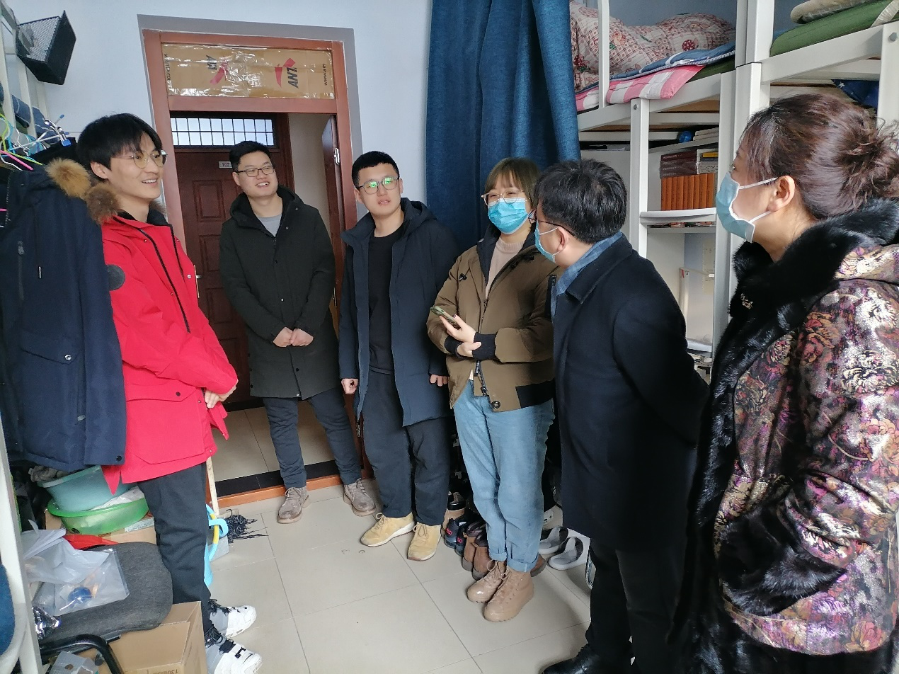 徐杰副书记、曹险峰副院长与学生们亲切交谈,详细地了解了学生们的年级、寒假留校原因以及家乡的疫情情况,贴心地问候学生们宿舍供暖是否充足、食堂饭菜是否可口、是否已经为父母家人送上了节日的祝福。了解到多数学生是为了撰写学位论文而选择留校过春节,老师们亲切地询问了学生们的学习地点和论文的写作进度,嘱托学生们要劳逸结合,在论文撰写的过程中做好规划、调整心态、保证好饮食和作息,如果学生们有什么困难,要及时与成人抖音