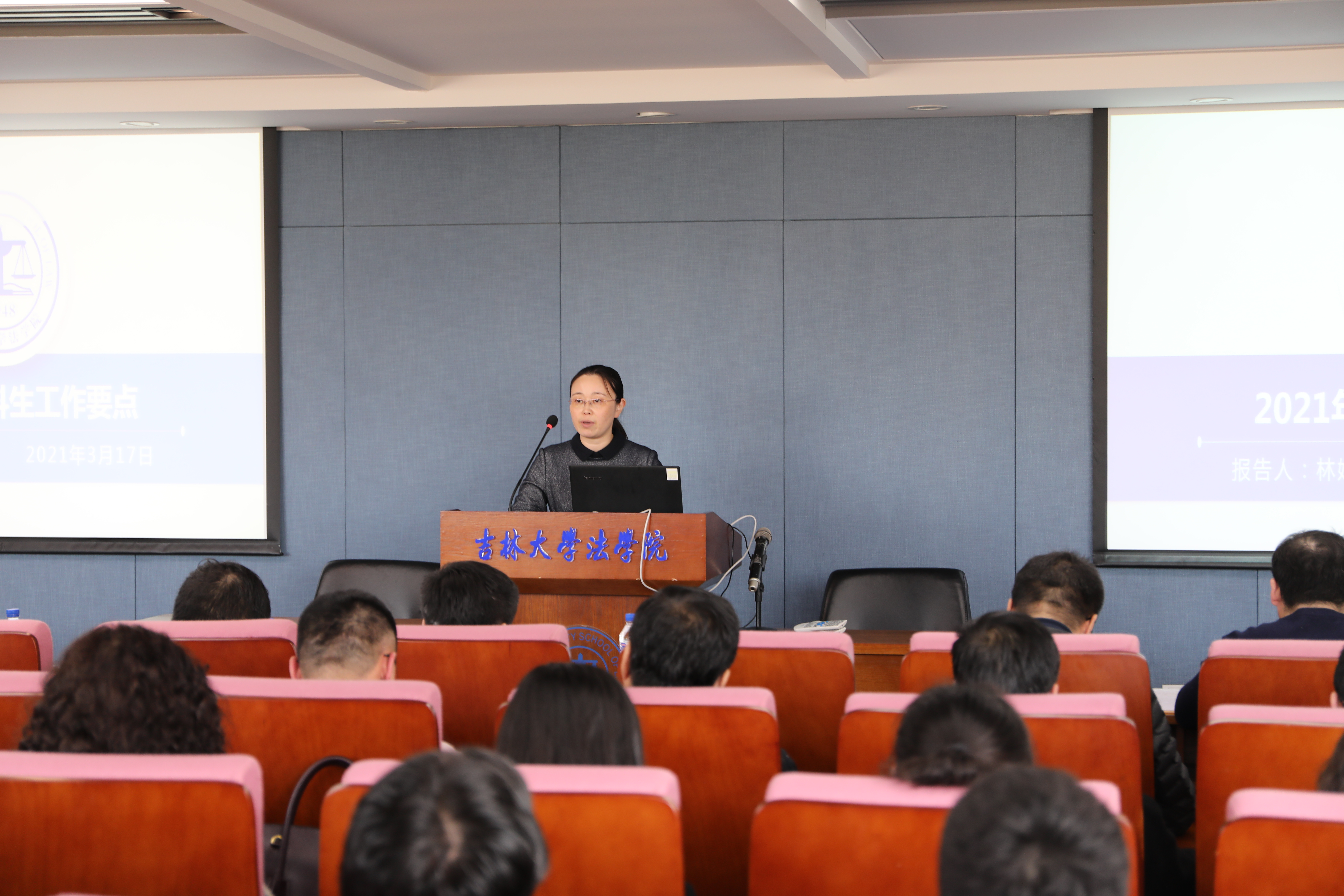 林媛媛副书记就本科生工作要点作了简要汇报。她指出,本科思政工作要始终围绕“三全育人”开展:要以“育人”为出发点,实现教师育人、学生自育、朋辈育人的有机结合,推进“全员育人”;以“务实”为落脚点,开展“德润学堂”线上及线下活动,深化“学业发展指导中心”建设,抓牢“全程育人”;以“文化”为突破点,开展“创先争优,榜样的力量”等评选活动及校园法治宣传系列活动,构建“全方位育人”。