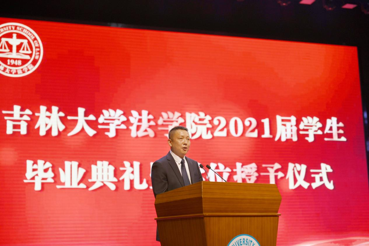 2021届学生毕业典礼暨学位授予仪式在中心校区鼎新大讲堂隆重举行。副校长边铁、校务委员会副主任房绍坤、校友和基金工作办公室主任迟宪良、成人抖音