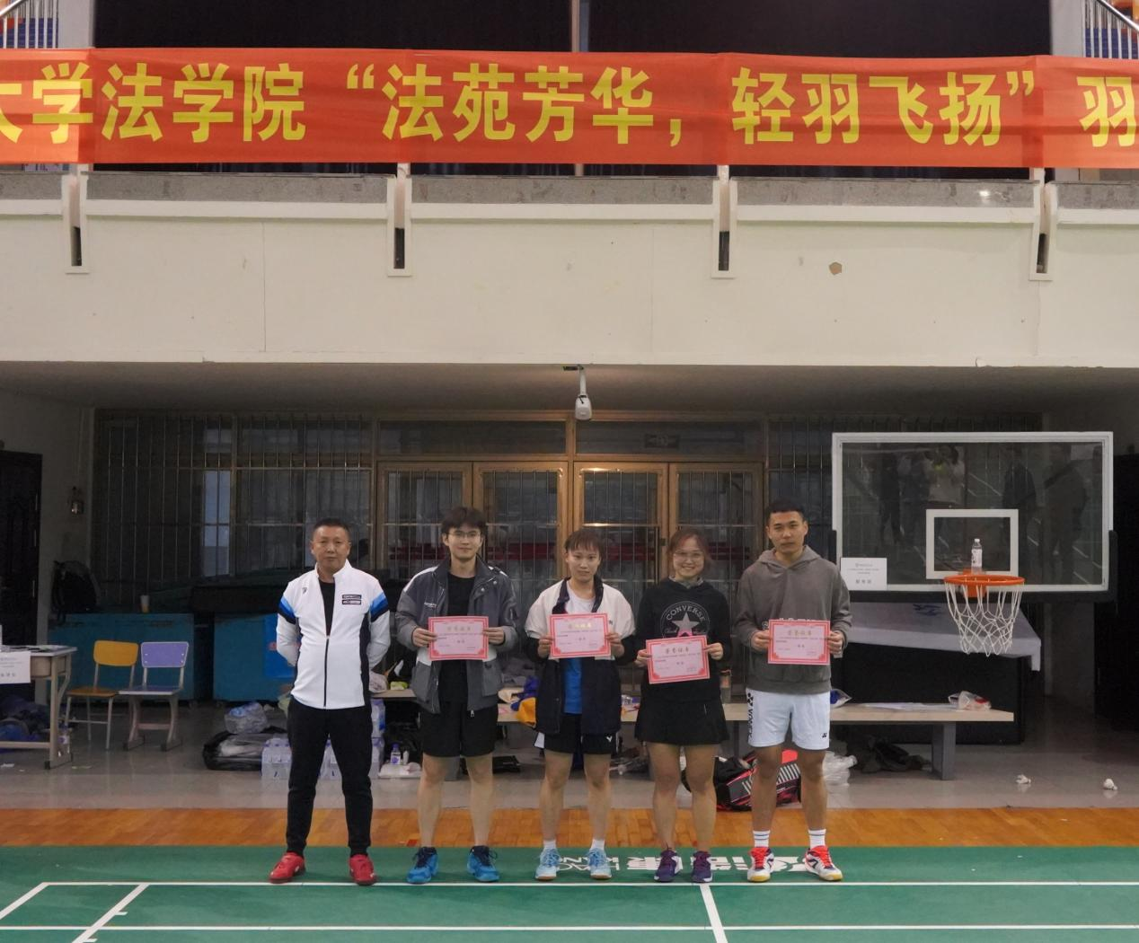 在中心校区体育馆举办了首届“法苑芳华,轻羽飞扬”羽毛球师生联谊赛。成人抖音