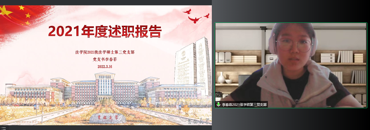 会上,4位教工党支部书记和7位学生党支部书记以“进一步贯彻落实习近平新时代中国特色社会主义思想,加强基层党建工作”为主题,结合各党支部特色,围绕党史学习教育系列活动的落实情况、履行基层党建第一责任人职责情况、党建工作与教学深度融合情况、落实立德树人根本任务情况、“新时代e支部”建设情况和疫情防控等几个方面对2021年度工作开展的做法与成效进行汇报,同时,检视存在的问题与原因,规划下一步的举措与目标。述职内容详实,条理清晰,图文并茂,展现出求真务实的工作作风。