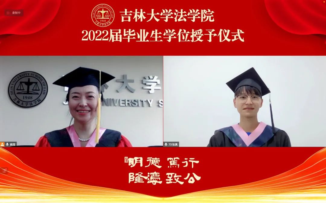 精心策划了线上学位授予仪式。校政策与法规办公室主任任喜荣教授、理论法学研究中心主任兼副院长杜宴林教授、副院长曹险峰教授、副院长王充教授、侯学宾教授和姚莹教授作为主礼教授,通过线上一对一的方式为毕业生在线授予学位,并祝贺同学们顺利毕业。这场精心安排的线上学位授予仪式为2022届毕业生们留下了美好而独特的毕业季回忆。