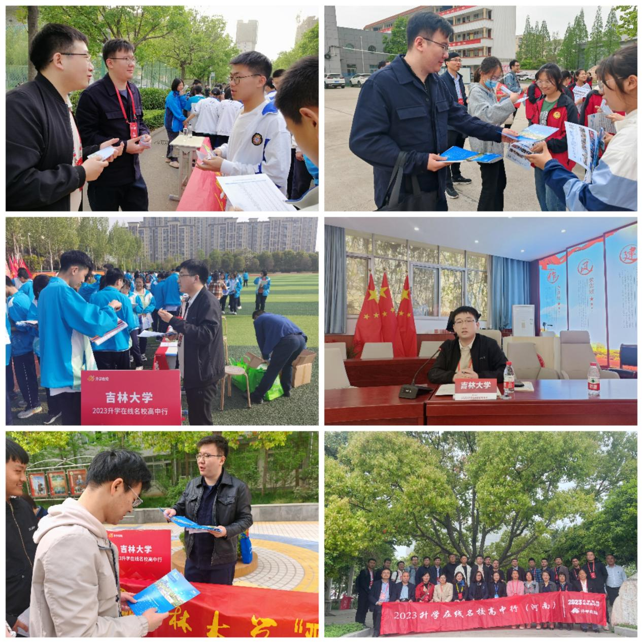 学生代表金洋、孔翔宇参加升学在线“名校高中行”活动,赴河南省开封市通许一高、商丘市商丘一高、周口市项城一高、许昌市襄城高中、漯河市漯河高中、驻马店市遂平一高等六所高中进行招生宣传,与各高中教师、学生和家长等进行深入的互动和交流。