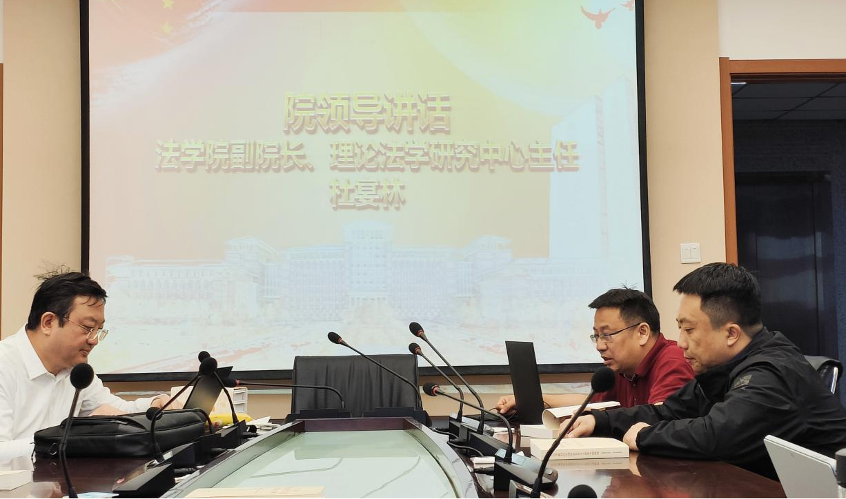 杜宴林强调支部党员应当深刻学习、贯彻习近平总书记重要讲话精神,深刻领悟“两个确定”的决定性意义,增强“四个意识”,坚定“四个自信”,做到“两个维护”,推动“学习贯彻习近平新时代中国特色社会主义思想”主题教育走深走实,推动法学理论研究中心的教学科研事业走上新台阶,为推动中国式法治现代化做出新贡献。