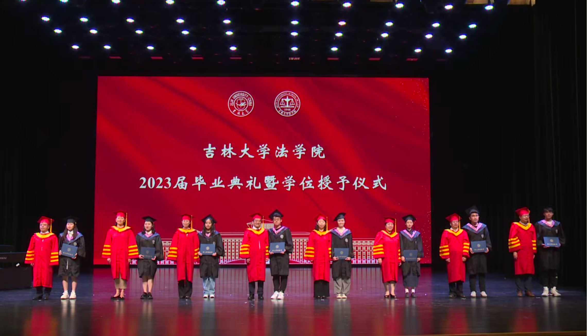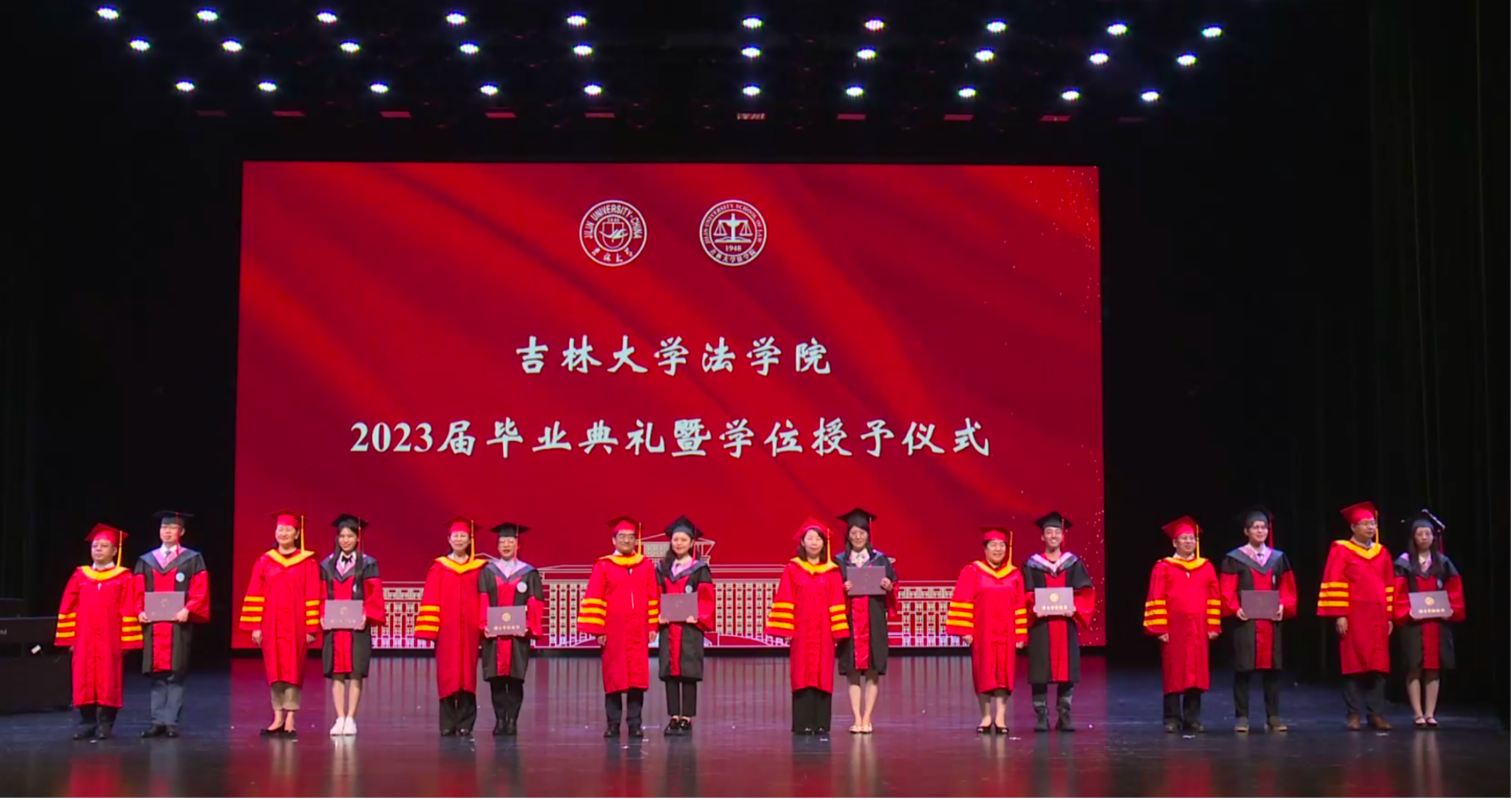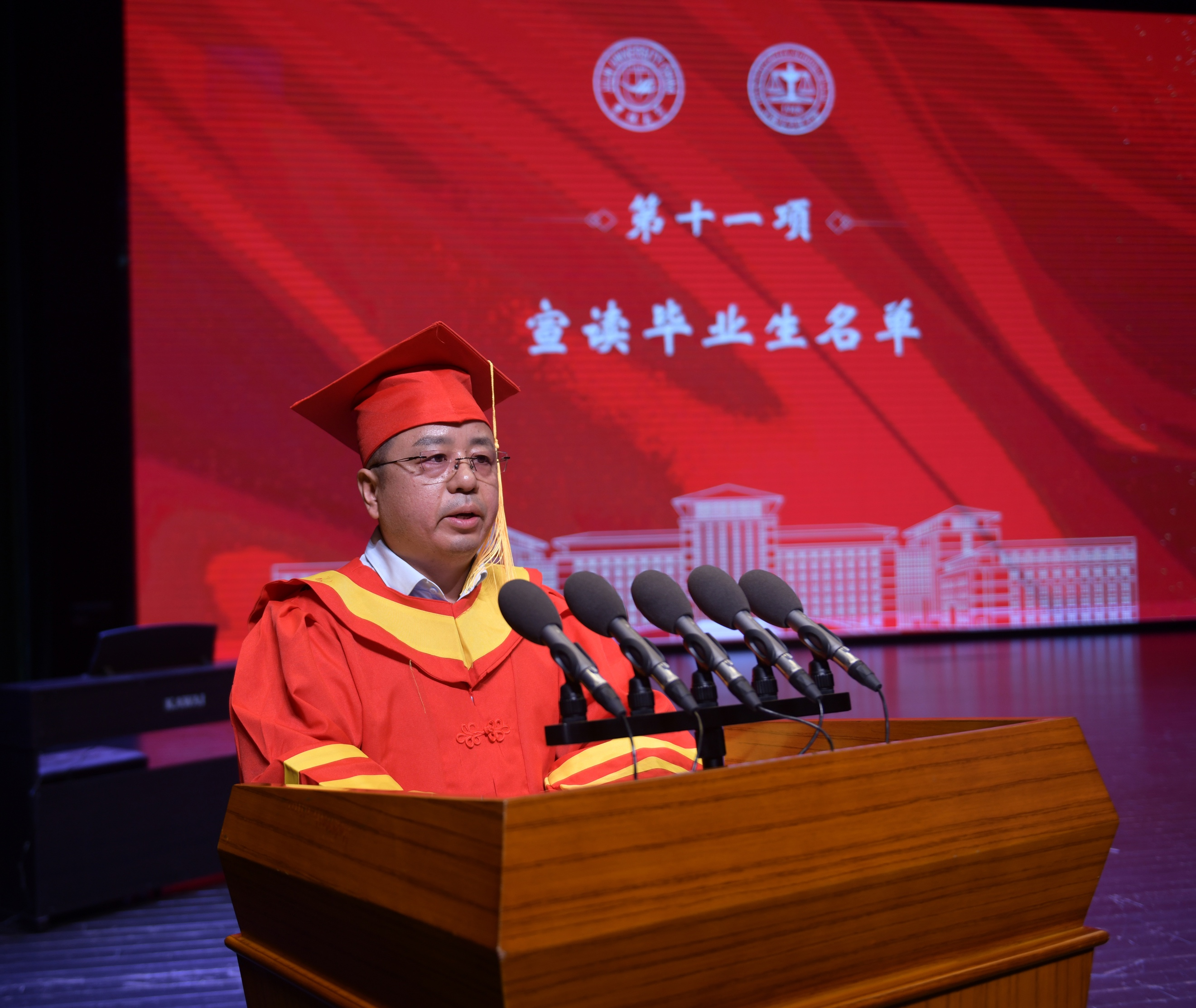 原副院长徐岱教授、副院长兼理论法学研究中心主任杜宴林教授、副院长曹险峰教授、副院长王充教授,为毕业生拨穗正冠并授予学位。“人比山高,脚比路长”,每一位毕业生将秉持着“明德笃行,隆法致公”的院训精神和“求实创新,励志图强”的校训精神,继续在“致公”与“求实”的道路上勇于追梦、奋力前行。