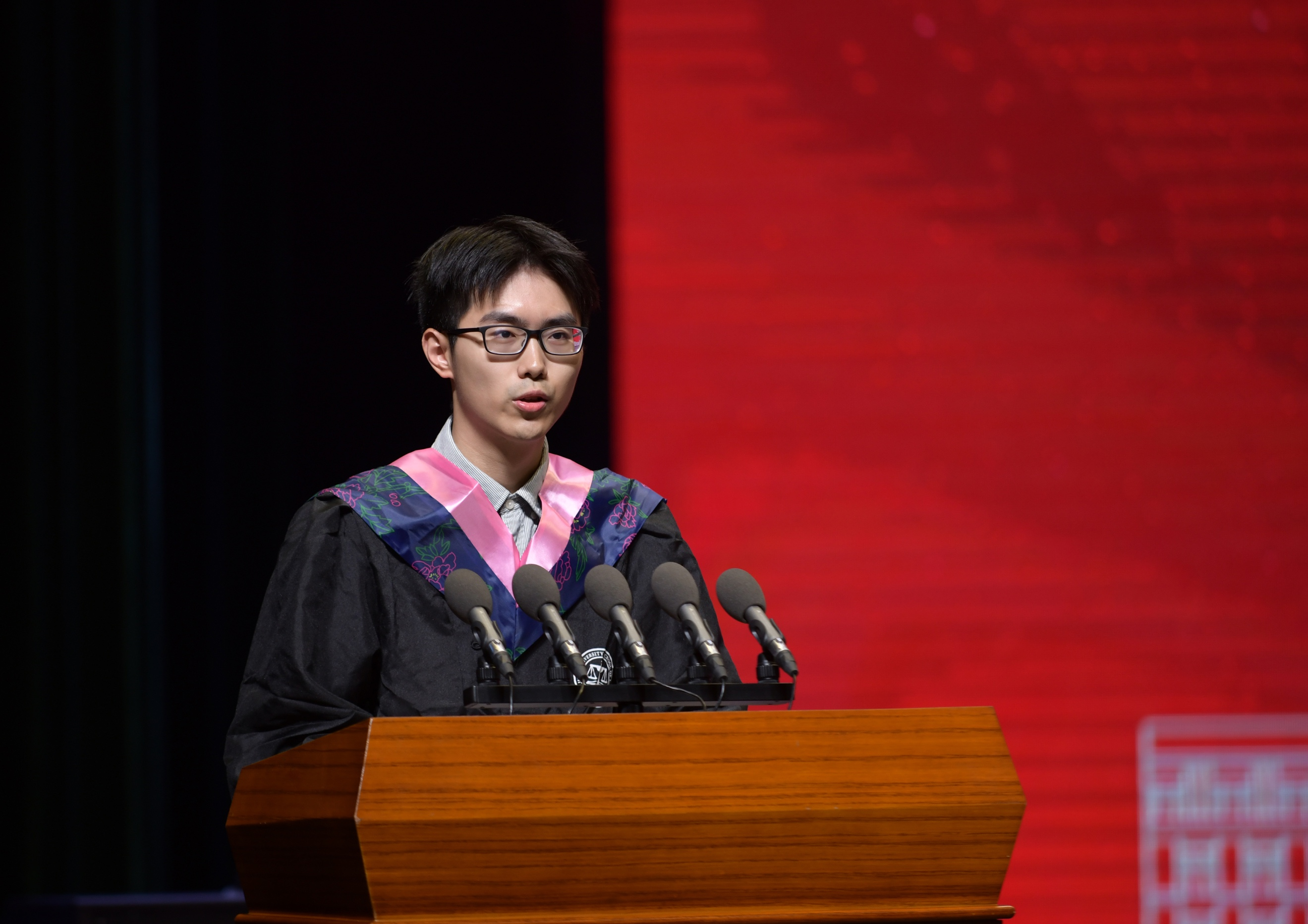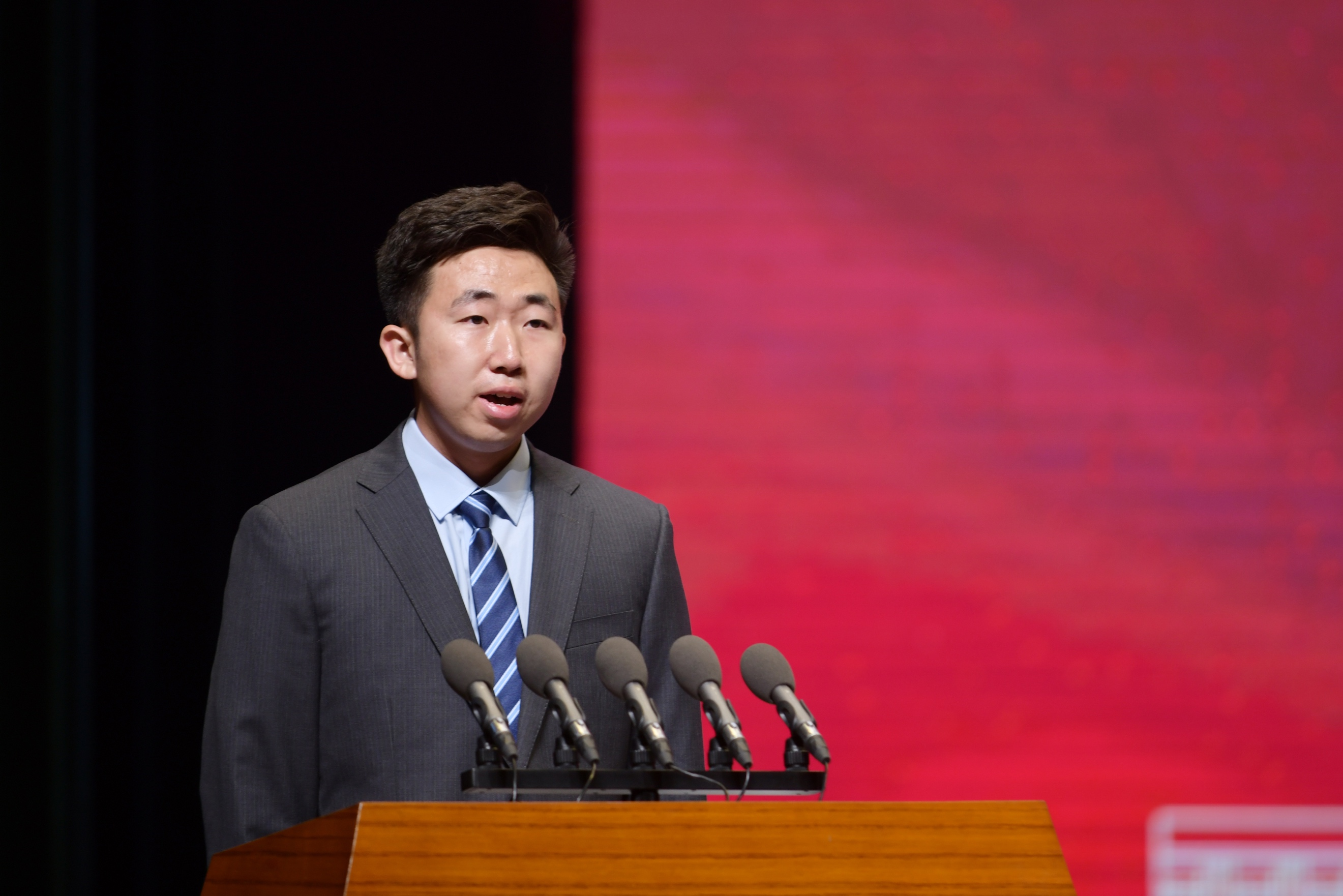 第二十二届法律硕士联合会主席团轮值主席朴景睿同学分别代表毕业生与在校生发言。他们回顾了在成人抖音