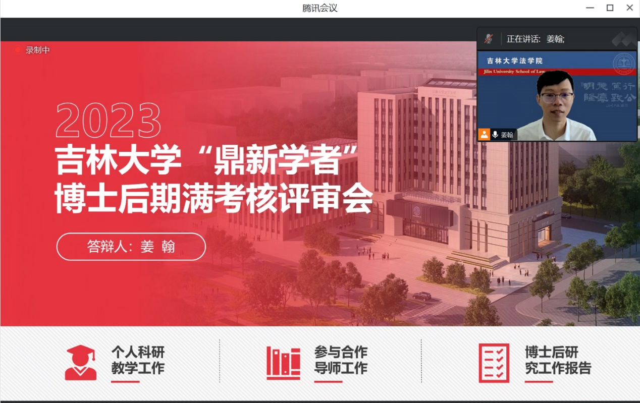 “鼎新学者”博士后姜翰博士首先就在站期间开展的工作情况、取得的科研成果及博士后研究工作报告情况,向在座的各位专家进行汇报。个人科研教学方面,姜翰博士主要就发表的代表性论文进行了展示,同时也介绍了个人参与教学培训及学术会议的情况。参与合作导师工作方面,姜翰博士主要介绍了参与合作导师国家社科基金重大项目的基本情况,包括参与项目系列学术会议、项目系列学术讲座、项目子课题研究工作及项目事务性工作等内容。博士后研究工作报告方面,姜翰博士主要从选题缘由、研究思路、研究内容及核心观点等方面进行了汇报。