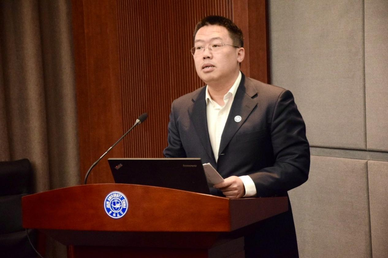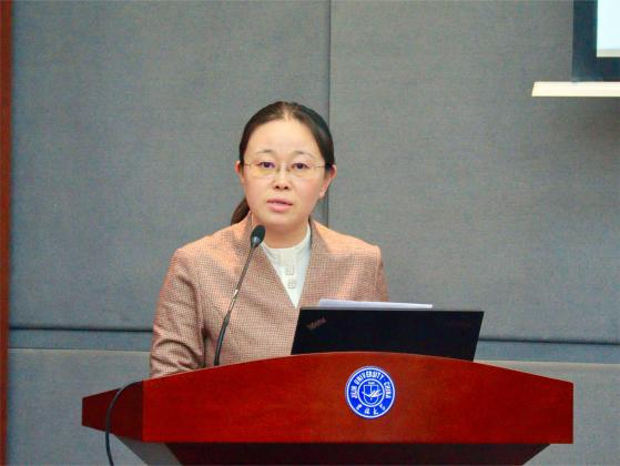 研究生工作汇报”为题,从团学组织建设、学生服务、奖助体系建设、完善校友工作、深化就业指导等方面对研究生思政工作进行总结,并重点围绕涉外法治人才培养背景下就业工作思路进行了阐述。