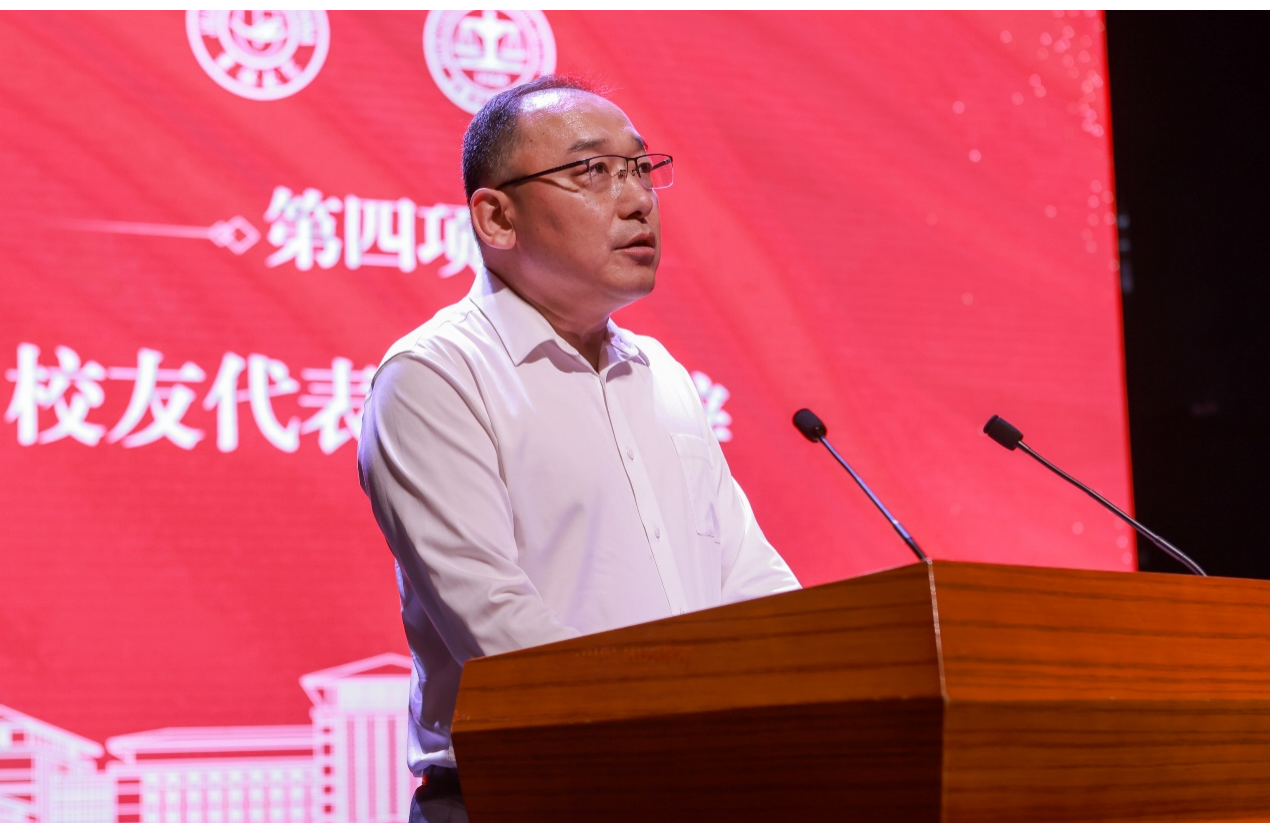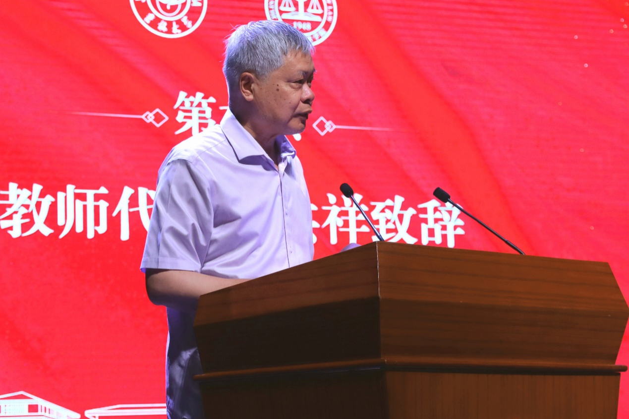 李洪祥教授以“变与不变”为主题代表教师致辞。他讲到,“变”的是时代和身份,同学们要紧跟时代步伐,与时代同频共振,即使转化思维,提升自身相应能力以适应新的身份;“不变”的是法律人公平、公正、善良、责任的初心、无论内卷躺平,都永不停歇慎思谨言的恒心、同学们心系母校,坚守院训的赤子之心以及成人抖音