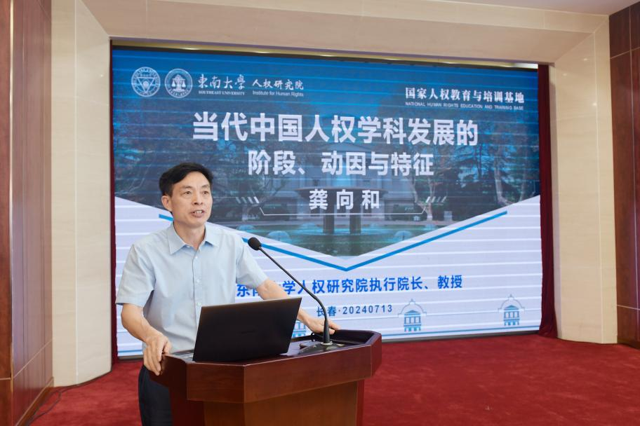 东南大学人权研究院执行院长龚向和教授在“当代中国人权学发展的阶段、动因与特征”为主题的发言中提出,实现中国式现代化必须建立高质量的教育体系,如果没有人权学科的发展,中国高质量教育体系将会是不健全的。中国人权学科的发展可以分为萌芽阶段、初创阶段以及目前的建设阶段,主要具有两方面的发展动因。其一,西方国家通过人权政治化施加的话语霸权成为我们将人权作为一个学科来进行研究的外部压力;其二,改革开放以来中国人权事业的迅速进步、人权水平的大幅提升也需要人权学科作为内部支撑。中国人权学科逐步呈现出符合中国实际、新兴综合式交叉、打破西方中心叙事模式的特点,正成长为一个独立、成熟的知识体系与学术体系。