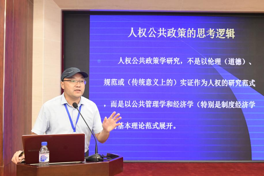 西南政法大学人权研究院孟庆涛教授在以“人权公共政策学元理论”为主题的发言中对人权公共政策学作为人权学二级学科的理论基础进行了深入探讨。他认为人权公共政策学研究,不是以伦理(道德)、规范或(传统意义上的)实证作为人权的研究范式,而是以公共管理学和经济学(特别是制度经济学)的基本理论范式展开。对此,孟庆涛教授主要从人权公共政策的研究兴起、人权公共政策的方法向度、人权公共政策的理论预设、人权公共政策的逻辑展开四个方面深入探讨了人权公共政策元理论。