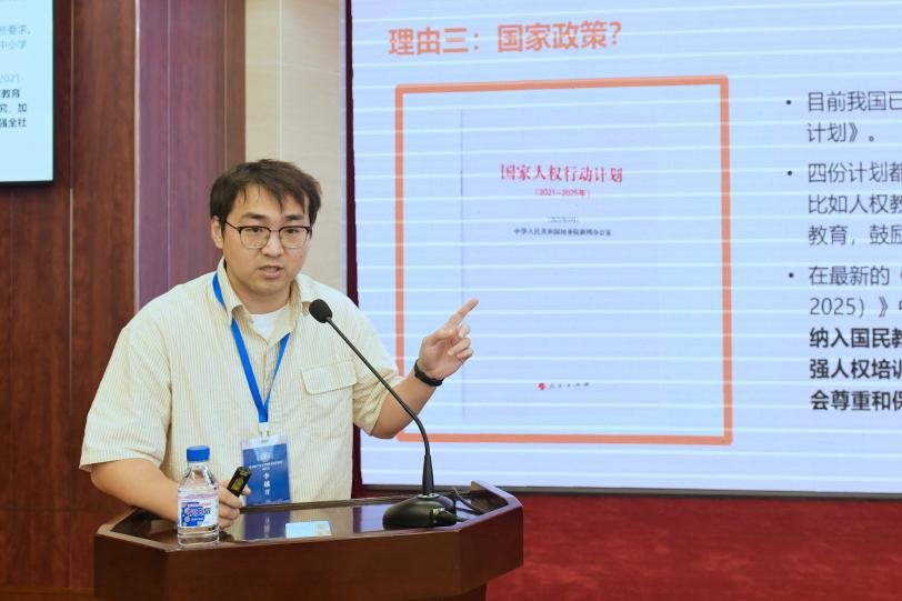 广州大学人权研究院博士研究生李越开在以“人权教育纳入国民教育体系的理论思考”为主题的发言中提出,将人权教育纳入国民教育体系是十分必要的。然而,目前我们将人权教育纳入国民教育体系仍然面临困境,包括核心价值观与共同价值观的冲突、宣传与教育结构的失衡等。为了缓解以上困境,在学科建设层面,人权学一级学科应当为相关二级学科提供元价值,并加强人权一级学科与二级学科的科际整合;在人权教学层面,人权教育者要讲清楚什么是人权,年轻一代人权学者也要注重学习与传承。
