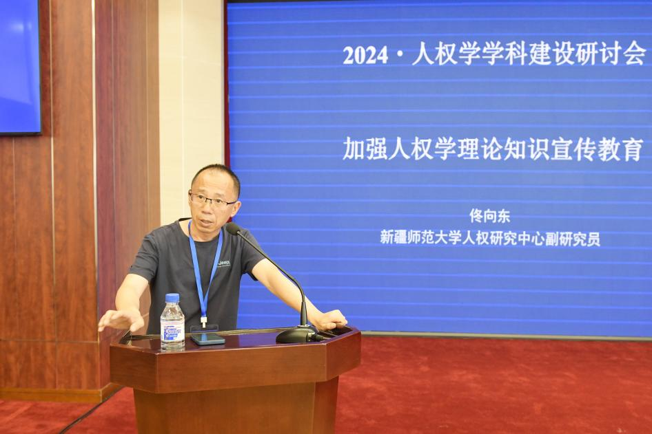 新疆师范大学人权研究中心副研究员佟向东在以“加强人权学理论知识宣传教育”为主题的发言中提出建议:第一,要将人权理论知识的宣传教育落在实处;第二,各有关部门要真正联合起来,面向广大学生和基层干部开展人权知识教育;第三,要大力发展我国人权学科体系、学术体系、话语体系;第四,针对新疆等边疆少数民族地区人权教育,应当采取重点帮扶办法。