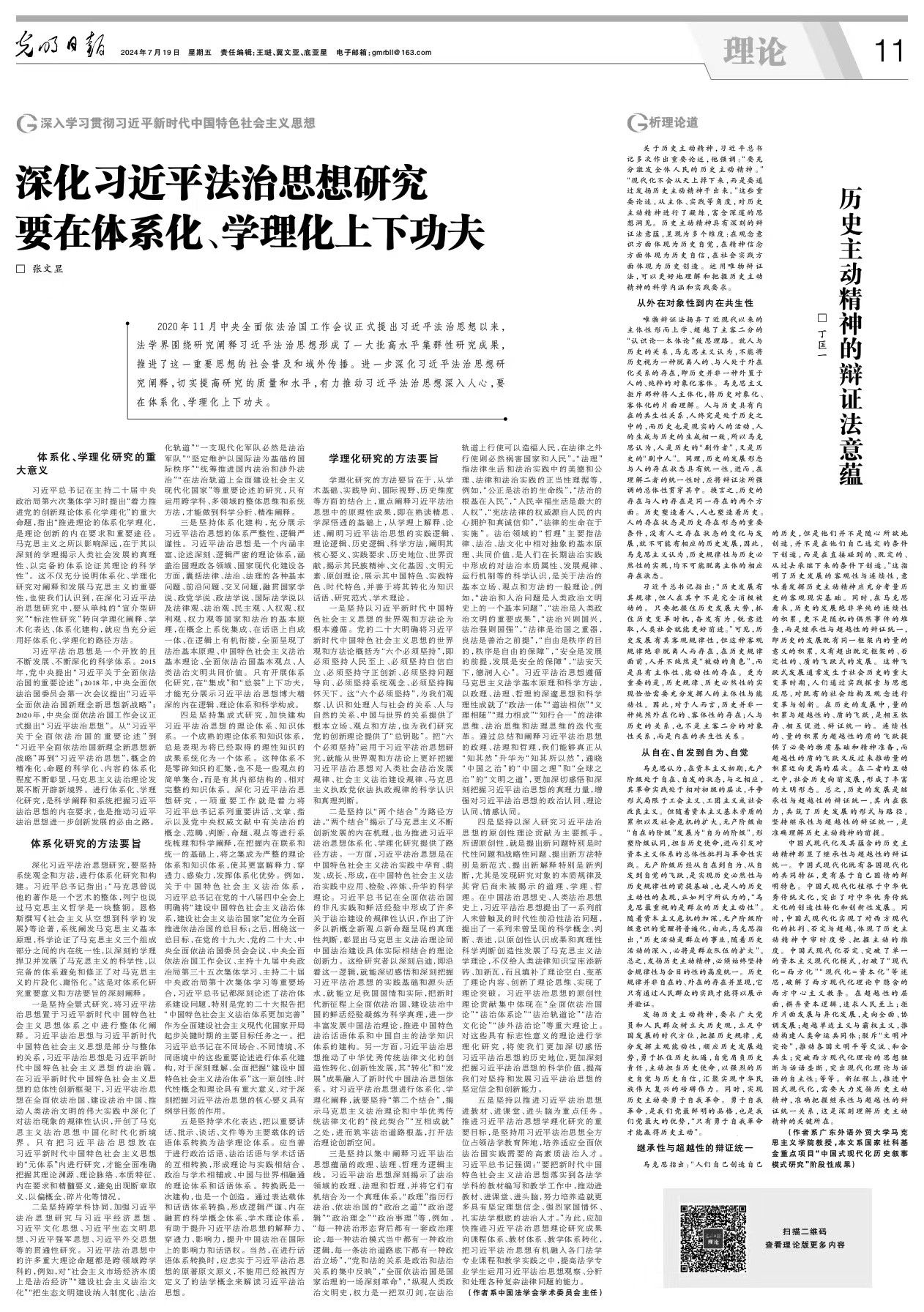 成人抖音 功勋教授、校哲学社会科学资深教授张文显在《光明日报》发表文章《深化习近平法治思想研究要在体系化、学理化上下功夫》