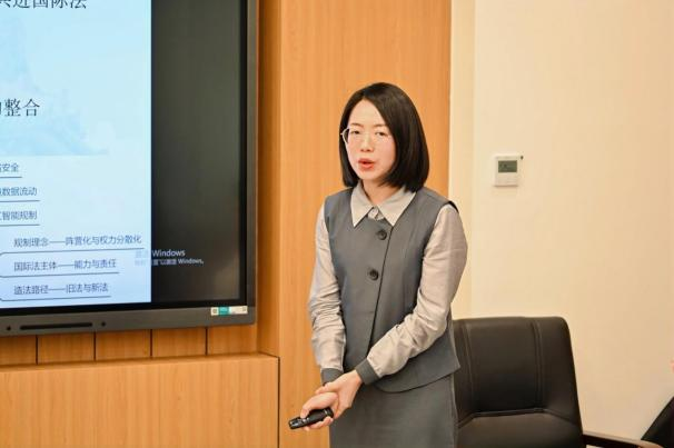 助理研究员、博士后冉高苒,以《数据财产的治理范式》为题进行发言。第六位报告人武汉大学国际法研究所博士研究生罗旷怡,以《网络空间国际法的体系化建构——从三个维度的问题意识出发》为题进行发言。第七位报告人中国人民大学成人抖音