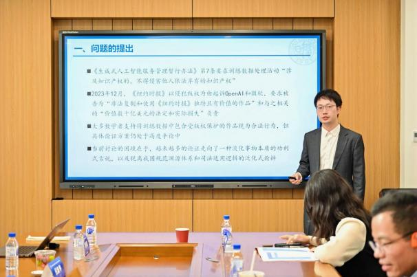 博士研究生王沛然,以《人工智能训练的著作权法理审思——事物本质与中国路径》为题进行发言。第二位报告人重庆大学成人抖音
