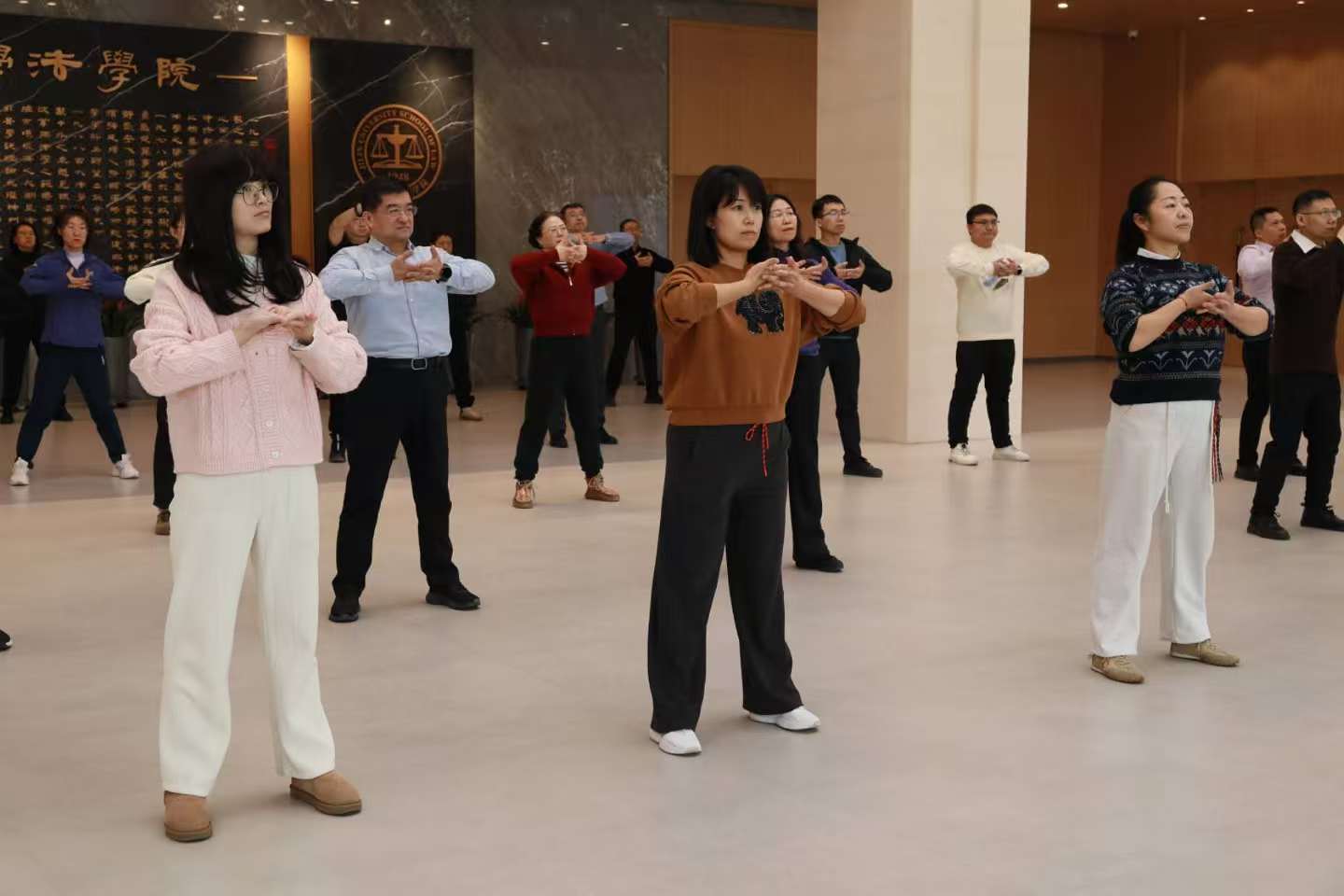 教职工积极参与,在传统养生功法中感受运动魅力。