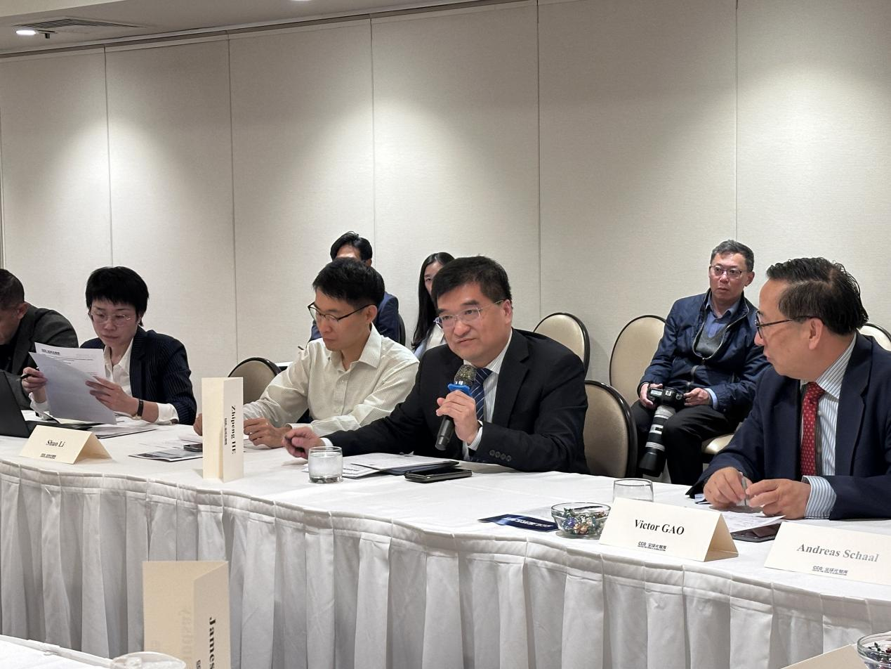 代表团赴亚洲协会参加交流会,亚洲协会(Asia Society)是美国举足轻重的重要智库,是洛克菲勒家族在1956年创办的民间组织,现已成为美国最权威的亚洲政策民间研究机构,是美国和亚太最具影响力的教育文化机构。会议以“探讨中美之间的误解与沟通不畅”为主题,旨在加强两国在当前复杂国际局势下的理解与对话,推动建设性沟通与合作,参会人员包括亚洲协会执行副总裁兼首席运营官、亚洲协会政策研究所创始主任兼高级研究员Debra Eisenman、路透社总裁Paul Bascober等来自政界、智库、媒体与学术界的重要代表。