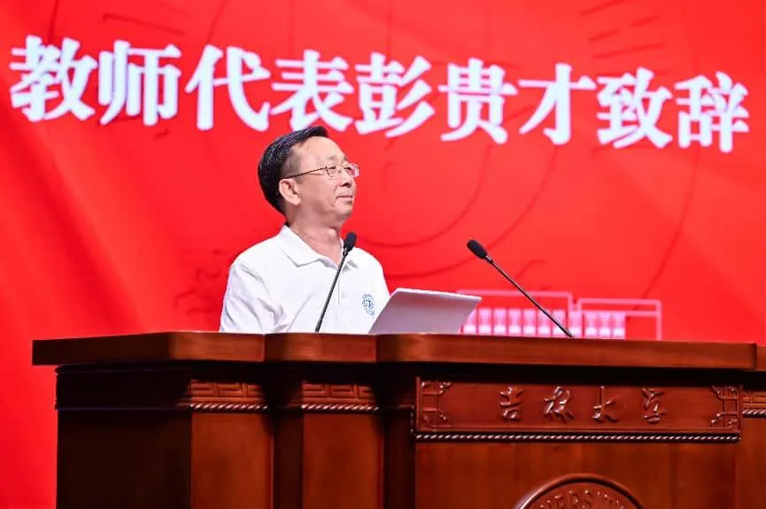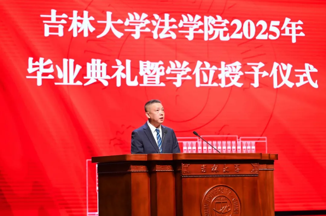 “师恩如峰立心间,师情似海纳百川。”在学子惜别母校之际,教师代表的嘱托饱含深情。中国宪法学会理事、吉林省行政法学研究会副会长彭贵才教授作为教师代表致辞,字里行间流露着全院教师对毕业生的不舍与祝福。他寄语2025届学子:既要永葆自信、恪守自律,又需学会调适身心,在人生长途中保持从容姿态。最后,彭老师深情祝愿同学们前程似锦,并郑重承诺:成人抖音