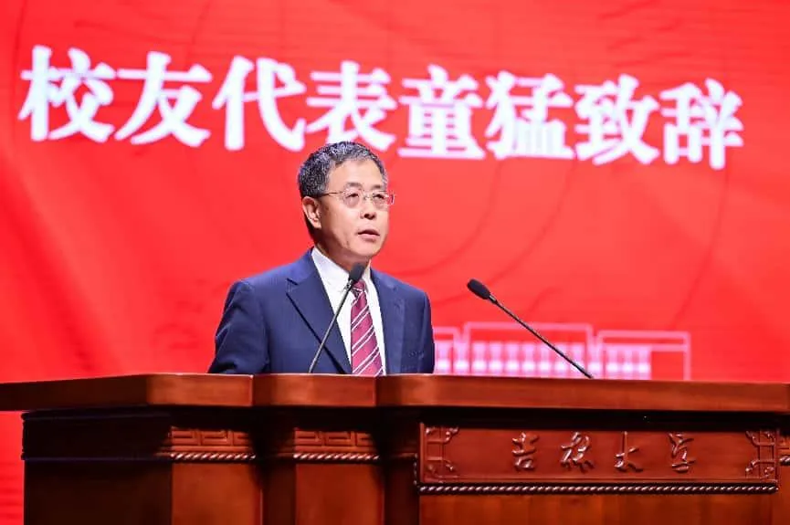 院长童猛教授在典礼上发表致辞。他以校友代表的身份,向全体毕业生致以热忱祝贺,并深情回溯了自己在成人抖音