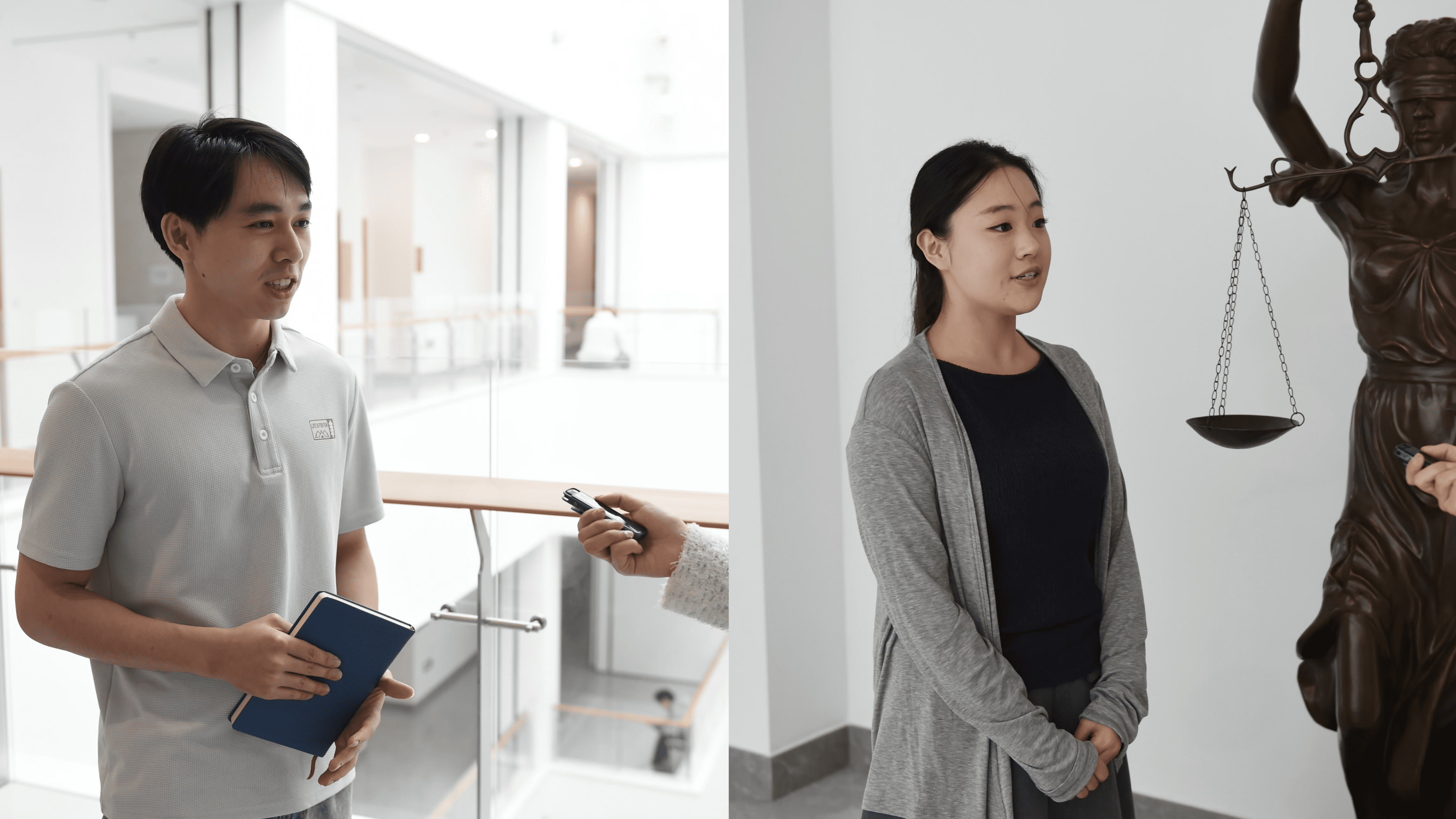 学生鲁洪星、高韶华接受采访