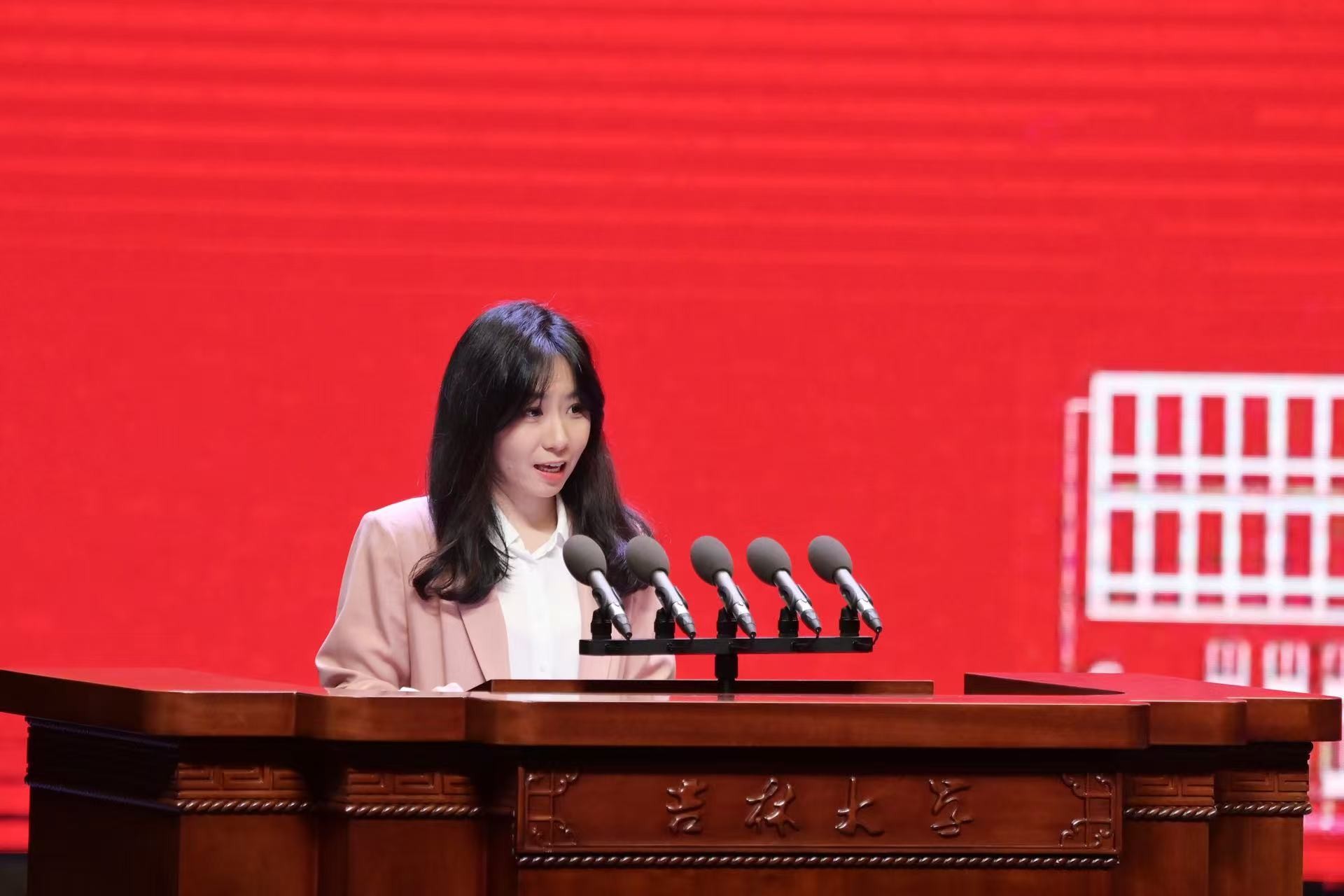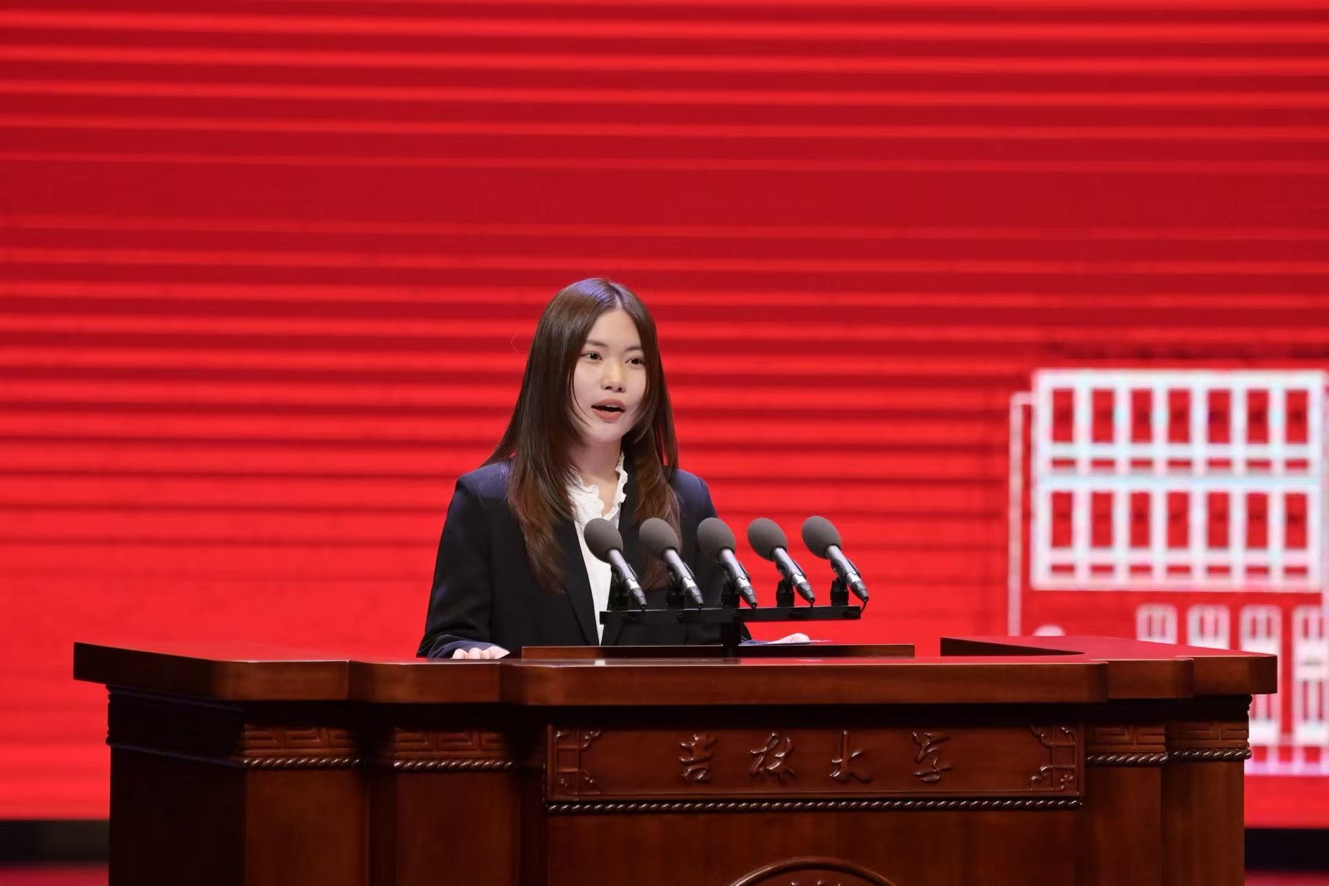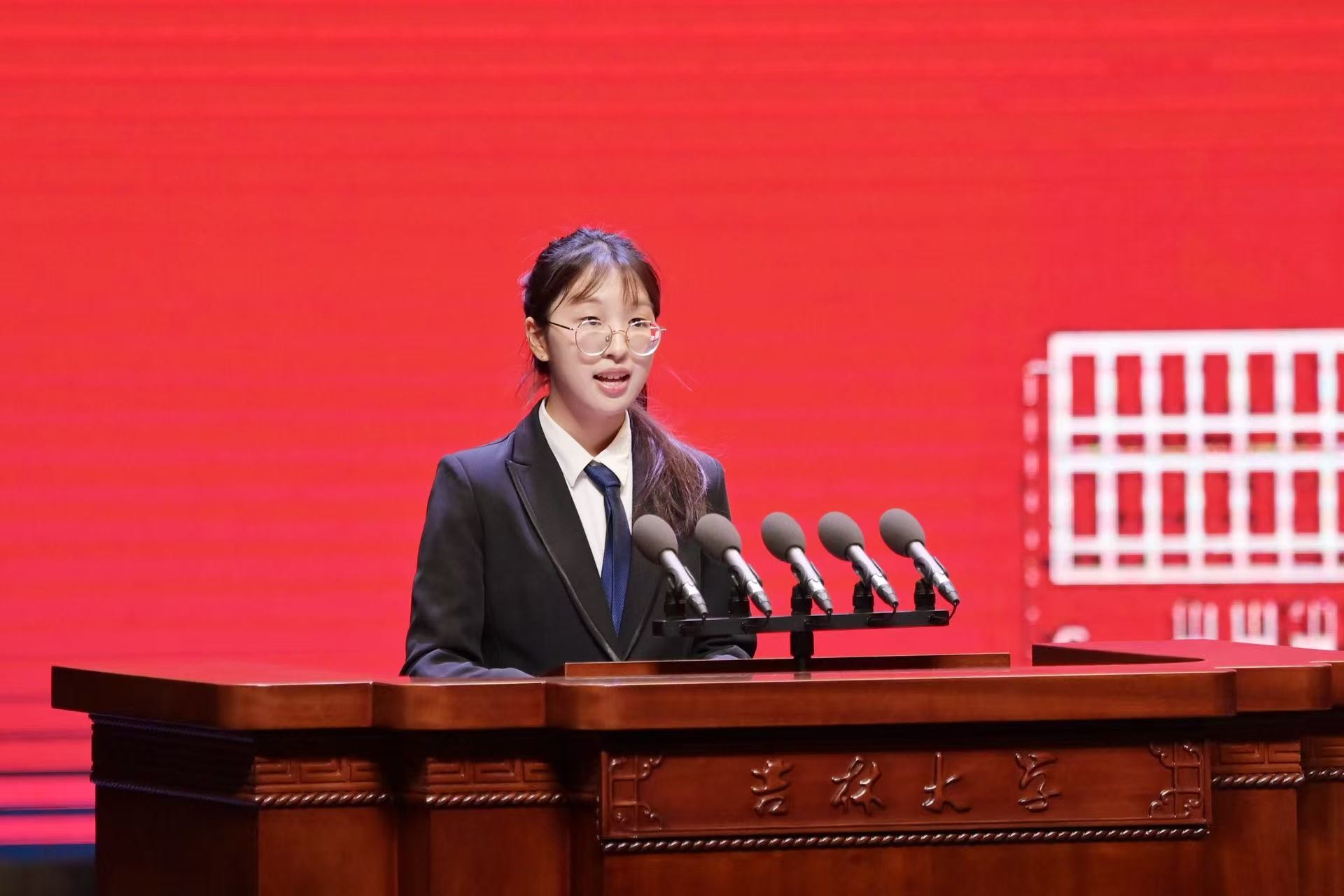 在校生代表、2024级研究生刘佳雯同学以"深耕当下,奔赴远方"为引,结合自身研途感悟与新生师弟师妹分享:“课堂啃典籍的专注、模拟法庭的思辨、田野调研的扎根,都是成长的注脚。”她将继续以专业为笔、担当为墨,在学术深耕中厚植情怀,做既通法理精髓、更怀为民热忱的追光者,以同辈姿态与成人抖音