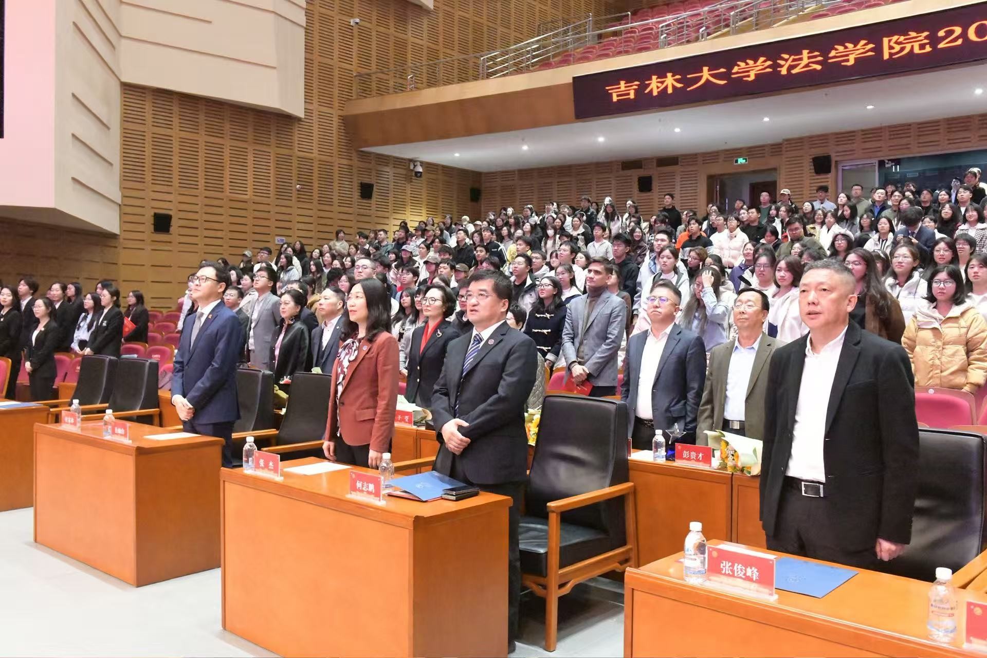2025年新生开学典礼在鼎新大讲堂举行。院党委书记张杰,院长何志鹏,北京岳成律师事务所副主任岳屾山,院领导张俊峰、杜宴林、王充、吕欣,理论法学研究中心副主任林媛媛,以及成人抖音