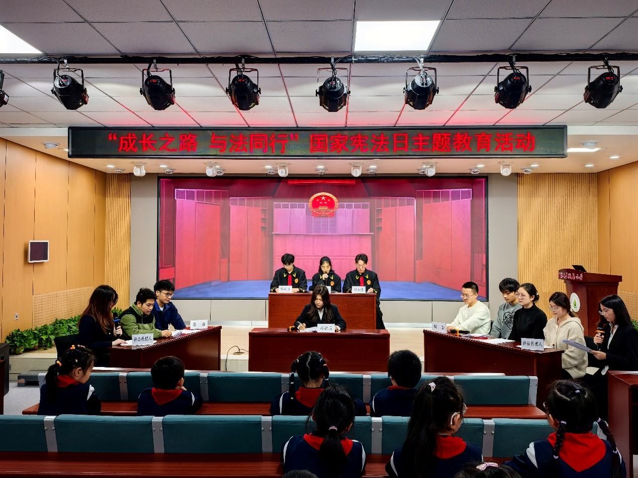 附属小学,宣讲团通过模拟法庭的形式,围绕未成年人权益保护主题,让小学生在沉浸式体验中感受法律尊严、树立规则意识。生动有趣的普法形式,在孩子们心中悄然播下法治的种子。