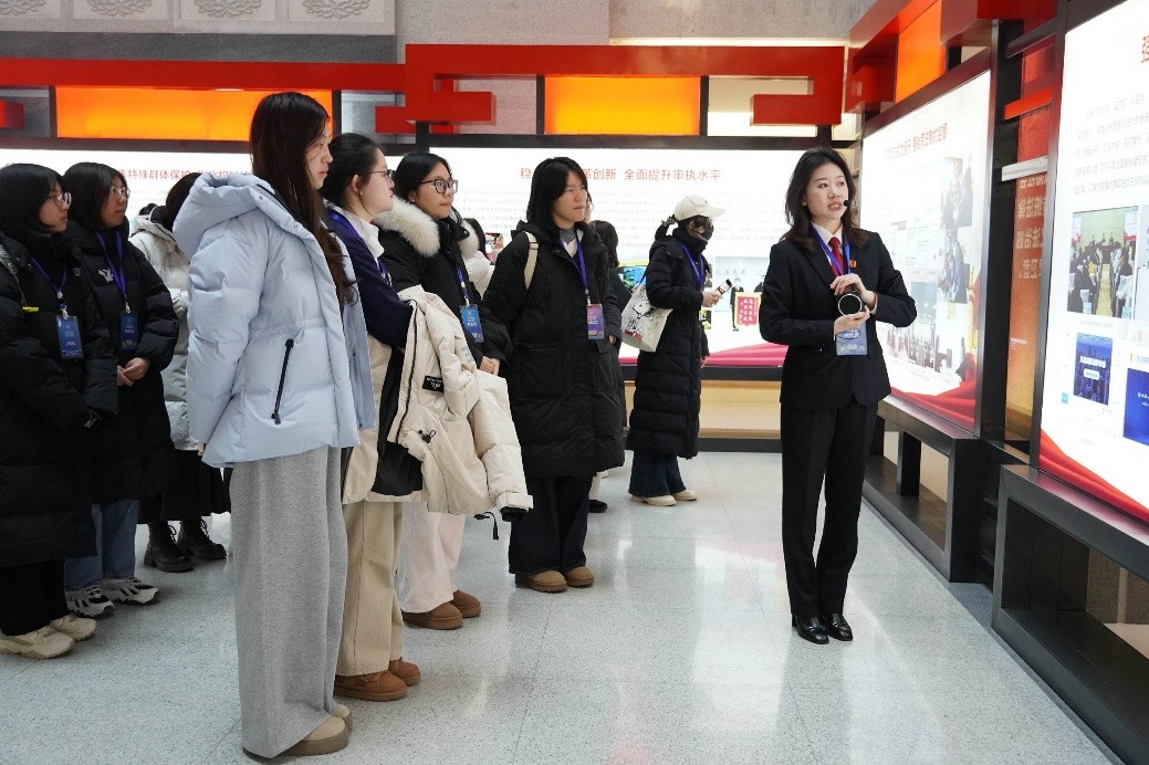 宣讲团师生走进吉林省高级人民法院,在“一站式”智慧诉讼服务中心亲身体验司法便民创新,旁听民事二审庭审,近距离感受“公正司法、司法为民”的生动实践。通过深入了解法院在政治建设、服务大局等方面的举措与成效,同学们对“法治吉林”建设有了更直观的认识和真切的体验,进一步坚定了投身法治事业的信念与决心。