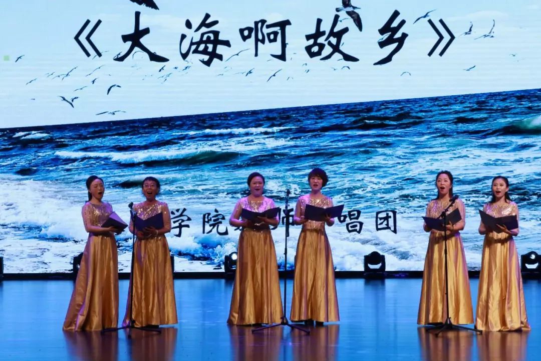 教师合唱团演唱《绒花》和《大海啊故乡》两首歌曲,在钢琴轻缓有力的乐声中,老师们悠扬的歌声扣人心弦,尽展师者风采。平日里,老师们治学严谨,一字一句,包含谆谆教诲,如今,优美的歌声展现了老师们多才多艺的另一面。教师合唱团的演出获得了同学们最热烈的掌声!
