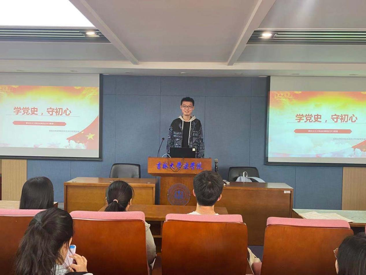 本科生2019级党支部全体学生党员在第三教学楼第八阶梯教室集中学习新民主主义革命时期党史,同学们热烈探讨,积极分享学习心得,进一步夯实自身的党史理论基础。