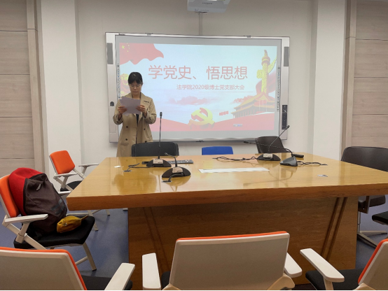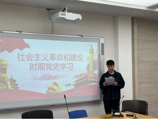的号召下,在经信教学基地召开了“学百年党史,忆万里征程”的党史学习教育。本期的学习主题是“社会主体革命与建设时期”党史学习。本次学习教育活动由2020级博士党支部书记侯家钰主持,由周敏敏和王延峰同志领学,党支部成员参加并展开积极讨论。
