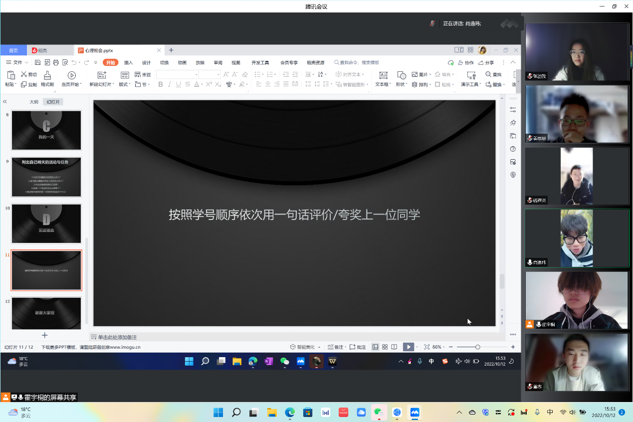 在最后的“见证彼此“环节中,每位同学都对上一位同学进行了夸赞。有的同学面对他人的夸赞显得不知所措,有的同学则露出了开心的笑容。主持人总结道:赞美别人是一种美德,接受别人的肯定也能促进我们提高自信。希望同学们在日常生活里也能善于发现他人的闪光点,勇于赞美他人,并能够从容自在地接受他人的称赞。