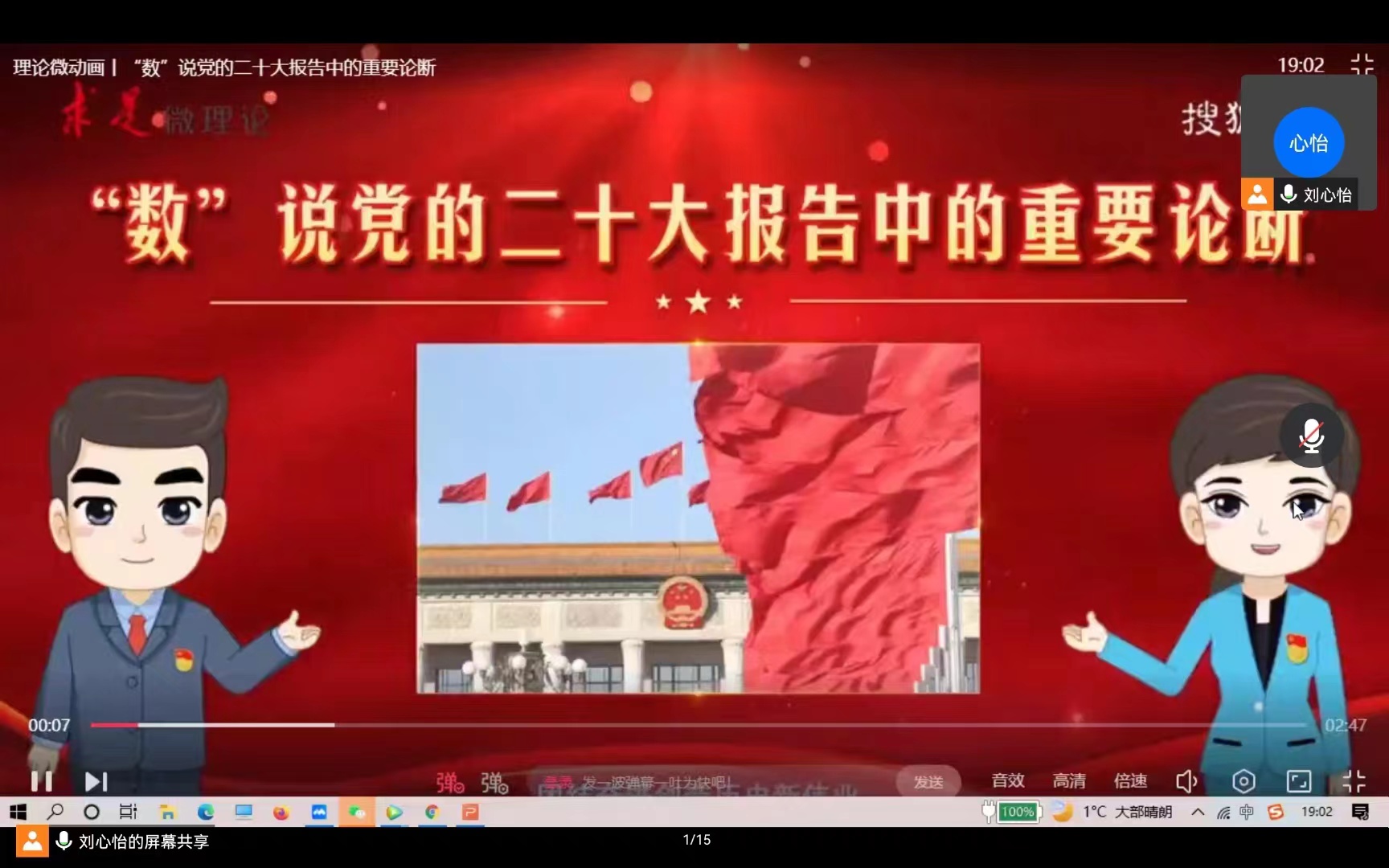 首先,刘心怡同志对本次党日活动学习的主题及目的进行介绍,并表示学习宣传贯彻党的二十大精神是我们两个支部当前和今后一个时期的重要任务。接下来,支部全体成员共同观看、共同学习党的二十大精神解读视频。