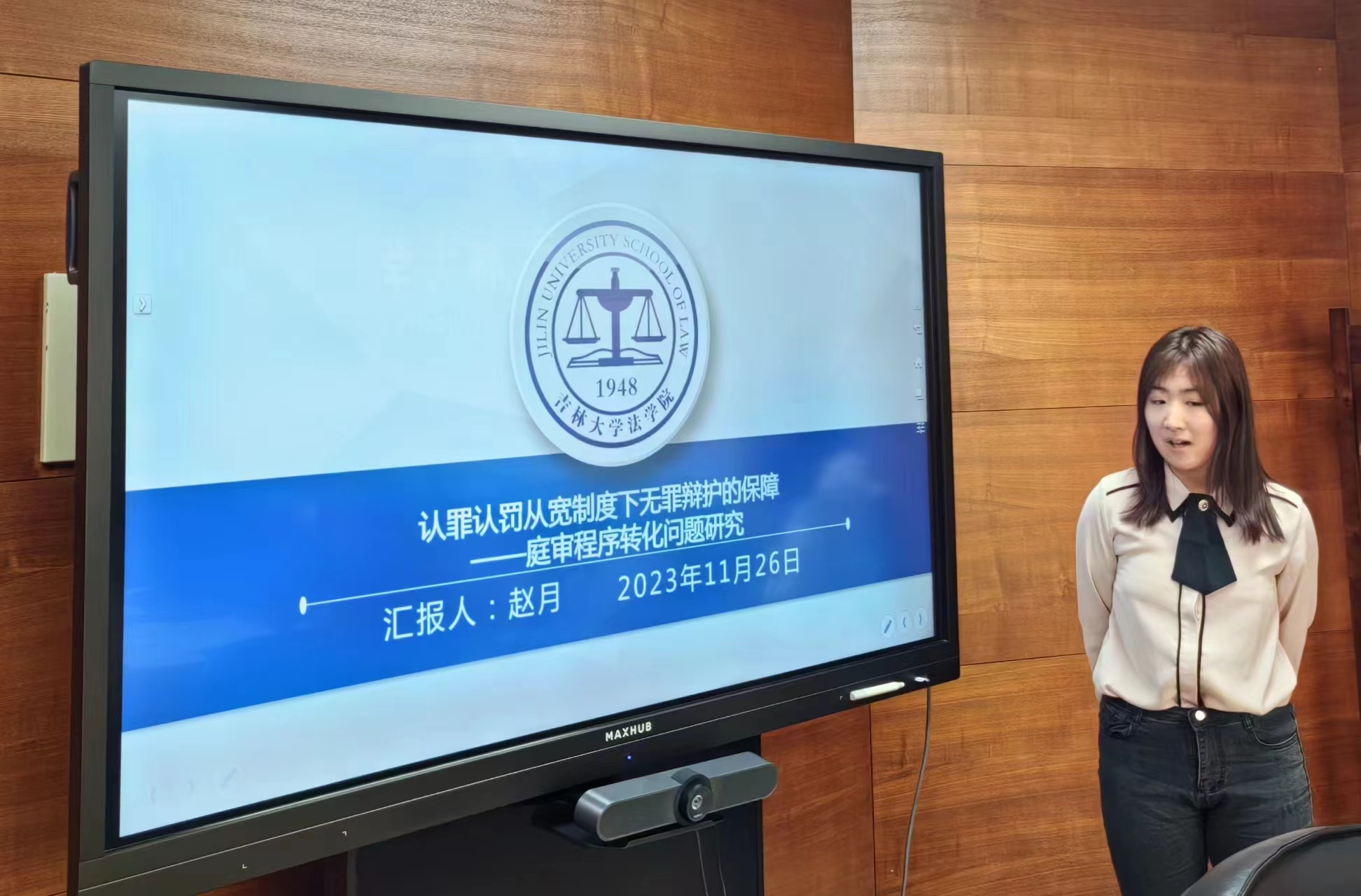 马毓文同学以“同案犯分案处理机制的建构”为题,对同案犯分案处理机制予以规范考察和实证考察,她认为现有法律规范缺乏系统性与权威性、个别规定不尽合理,建议通过确定分案的适用主体、明确分案处理的适用范围来完善分案机制,健全分案后的特殊处理机制,并强化监督和救济机制;宋姝梦同学的题目是“论刑事诉讼中专门性问题报告的证据能力”,她从专门性问题报告的规范分析入手,通过引用我国《刑事诉讼法》第50条和《美国联邦证据规则》对关联性的界定来分析专门性问题报告的关联性,并提出专门性问题报告不属于法定证据种类,而是“准鉴定意见”;吴雯婷同学以“论专项合规整改——以涉税案件为视角”为题,她认为合规整改是刑事合规制度构建的应有之义、专项合规相较全面合规更符合刑事合规的要求、税收专项合规整改具有独特的激励作用,并从税收专项合规整改的参与方、计划、考察期、费用承担四个方面来对税收专项合规整改提出制度构建;谭城城同学的题目是“共同犯罪分案审理被告人对质权研究”,她认为在分案审理的情况下作为他案被告人的共犯已经由其他审判程序进行审判,一般并不需要到庭,因而分案审理加剧被告人对质难的困境,她主张明确赋予被告人完整的对质权并注重对分案审理对质权的特别保护;曲君同学以“个人信息保护刑事附带民事公益诉讼问题研究”为题,她通过对相关案例进行整理,从案件的空间分布、诉讼请求的设计、证据的提出与处理、案件的认罪认罚认赔情况、纠纷解决方式等方面对个人信息刑事附带民事公益诉讼案件予以实证分析,她认为该类案件存在法律规定不明确、证据处理与使用规则缺失、认赔从宽存在适用障碍、调解程序展开困难的运行困境,并提出与之对应的优化路径。