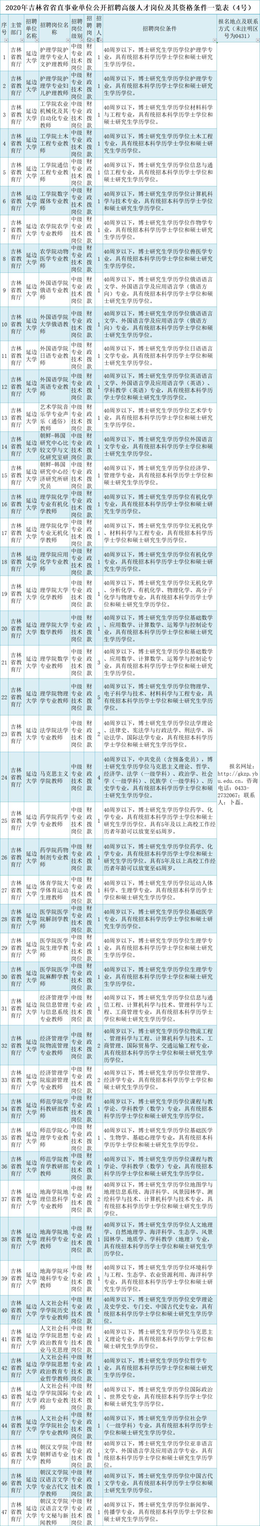 1.2020年吉林省省直事业单位公开招聘高级人才岗位及其资格条件一览表(4号);