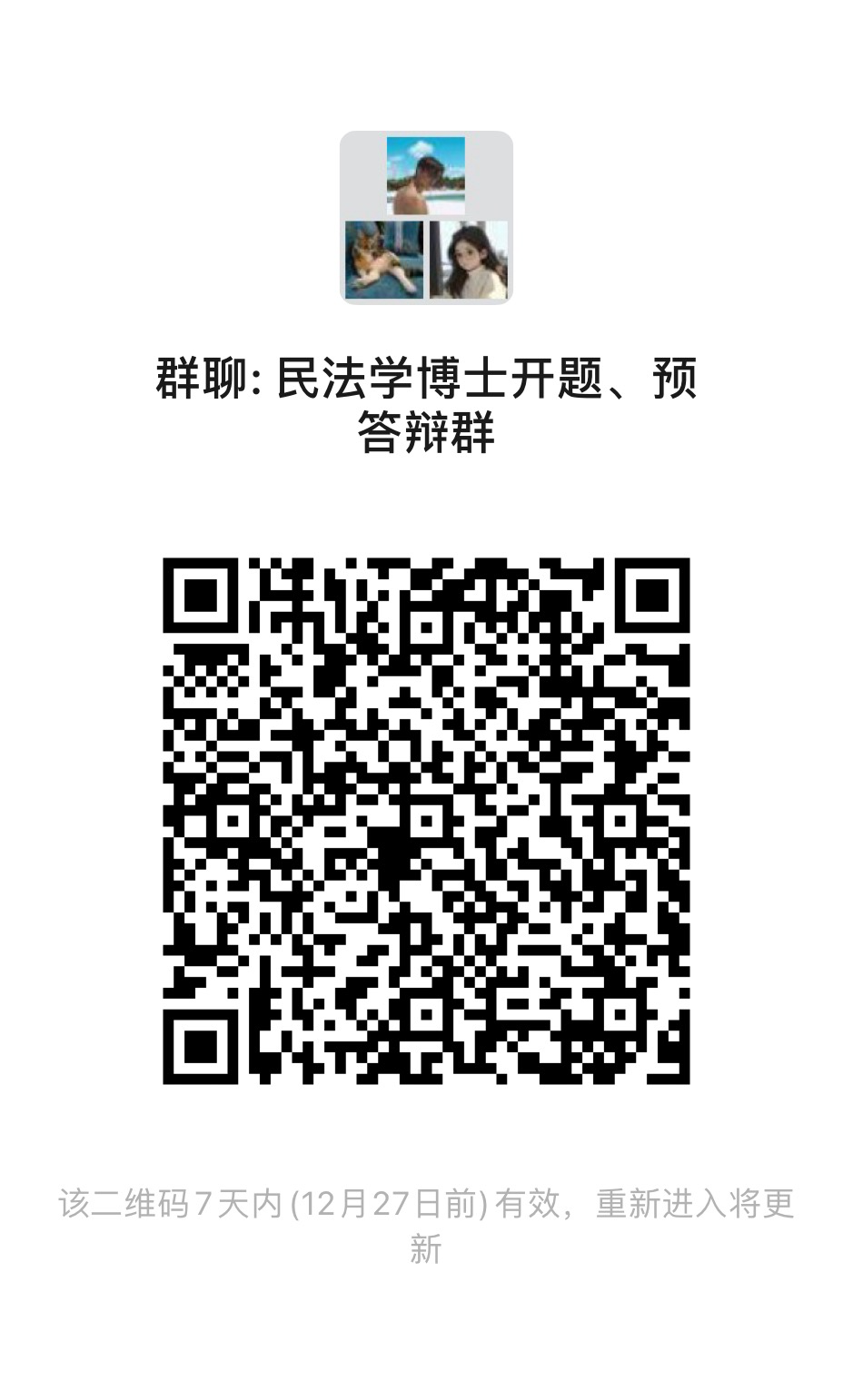 请参与本次开题的硕士研究生及时扫码入群(硕士生入群后请在“我在本群的昵称”中写明“学硕/法本法硕/非法本法硕+姓名”,如:学硕张三)。