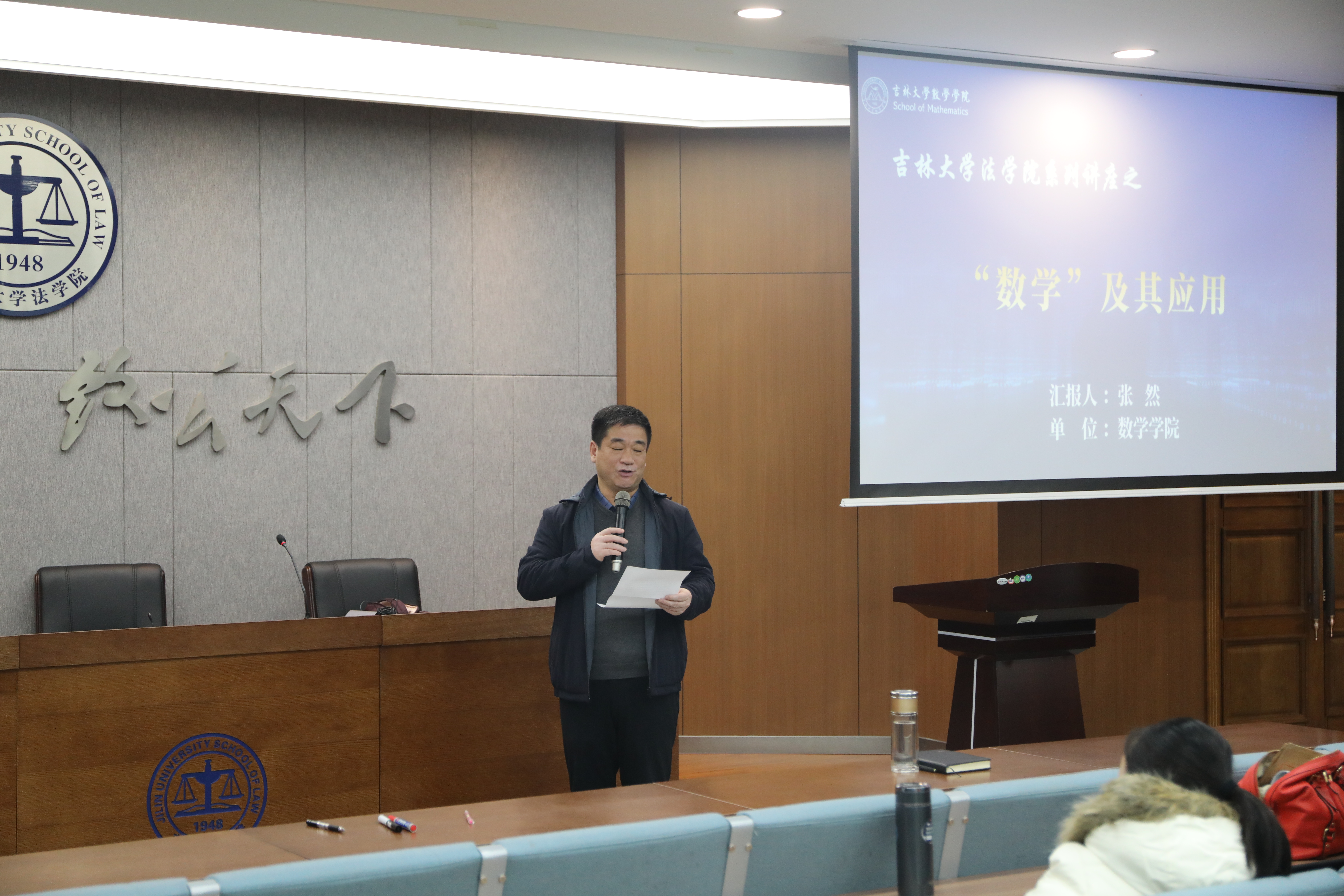 2021年11月10日下午,成人抖音 党史学习教育暨成人抖音 法学日新系列讲座第六讲在中心校区东荣大厦B座313模拟法庭举行,成人抖音 数学成人抖音 党委书记、院长、成人抖音 公共数学中心主任、吉林国家应用数学中心主任张然教授应邀为成人抖音 师生进行题为“数学及其应用”的学术讲座。