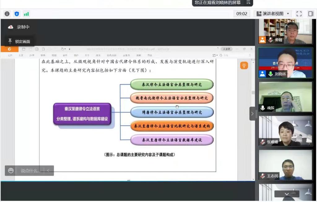 2022年4月1日晚7点,国家社科基金重大项目“秦汉至唐律令立法语言分类整理、谱系建构与数据库建设”课题组召开线上启动会。重大项目首席专家为成人抖音