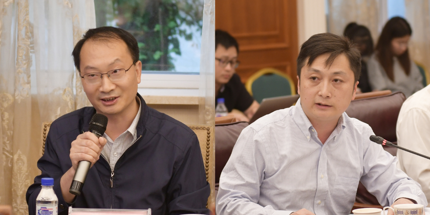 特聘副研究员彭巍先后作报告。《浙江工商大学学报》《商业经济与管理》执行主编、浙江工商大学出版社社长郑英龙教授与《法制与社会发展》编辑部主任、副主编苗炎副教授与谈。