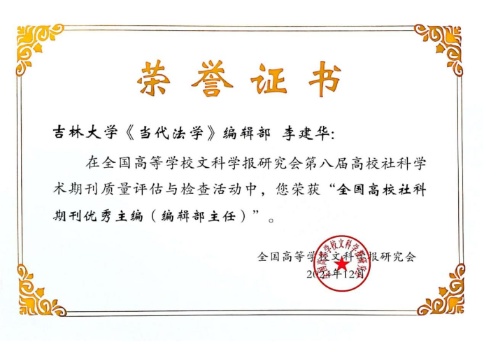 《当代法学》主编李建华教授荣获“全国高校社科期刊优秀主编”和“玉笔奖(从事编辑工作满30年)”。