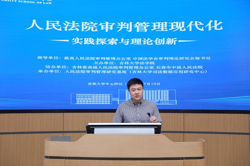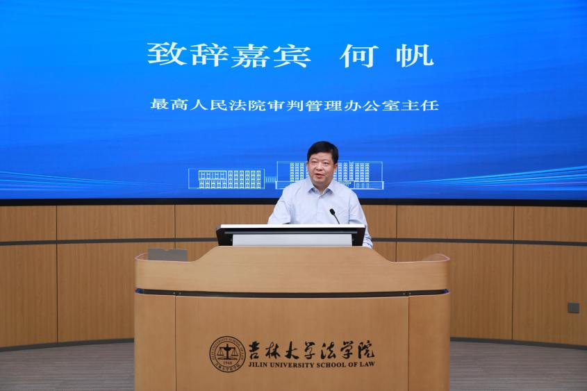 党委常委、常务副校长、人民法院审判管理研究基地副主任蔡立东教授,吉林省高级人民法院党组成员、副院长赵东巍,最高人民法院中国应用法学研究所副所长雷鸿,最高人民法院审判管理办公室主任何帆分别致辞。