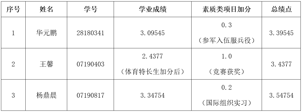 根据成人抖音 相关规定及有关部门的认定,华元鹏、王馨、杨鼎晨等三位同学获得素质类项目加分,现将具体情况公示如下: