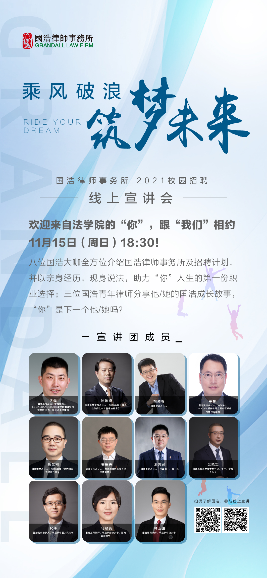 国浩律师事务所创立于1998年,中国最大的法律服务机构之一,全球33个办公室、3600余员工,境内外投融资领域尤其资本市场最为专业的法律服务提供者,一家关注并践行社会责任的律师事务所。今年我们国内各办公室拟计划招聘300多人。
