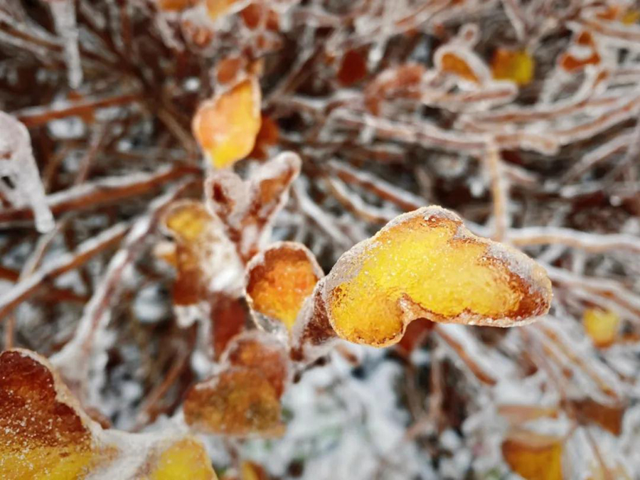 夜晚的露水 凝结作枝杈间悬挂的冰凌